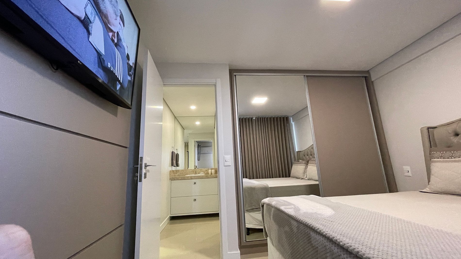 Imóvel com amplo espaço interno e excelente acomodação com quase todo móvel sob medida para melhor lhe atender com conforto e sofisticação, possui 2 TVS 50" e 2 Ar condicionado.