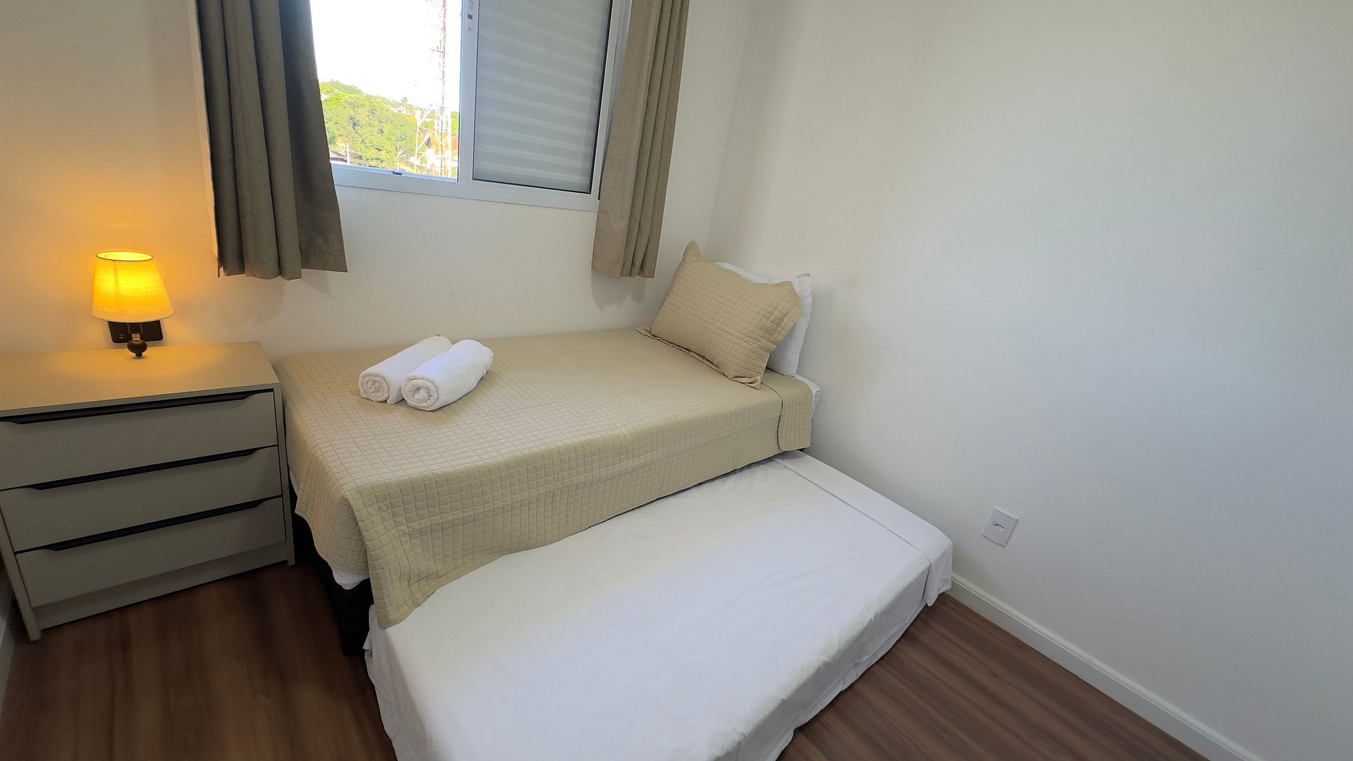Este apartamento de temporada é um verdadeiro refúgio de conforto no coração de Foz do Iguaçu, localizado no charmoso bairro Vila Yolanda. Situado no décimo andar, o imóvel conta com dois quartos muito bem planejados: um deles com uma cama queen confortável e o outro possui uma cama de solteiro e um colchão de solteiro ( bi-cama). Há também um banheiro social para maior praticidade.