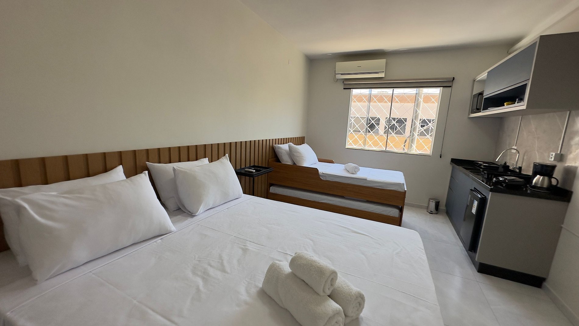 Este apartamento conceito aberto foi planejado para oferecer conforto e praticidade em uma localização privilegiada de Foz do Iguaçu, próxima às principais avenidas da cidade — Avenida Brasil e Avenida Juscelino Kubitschek (JK). Essa posição central garante fácil acesso a comércios, restaurantes, mercados, padarias e farmácias, além de estar bem conectada às rotas para os principais pontos turísticos.