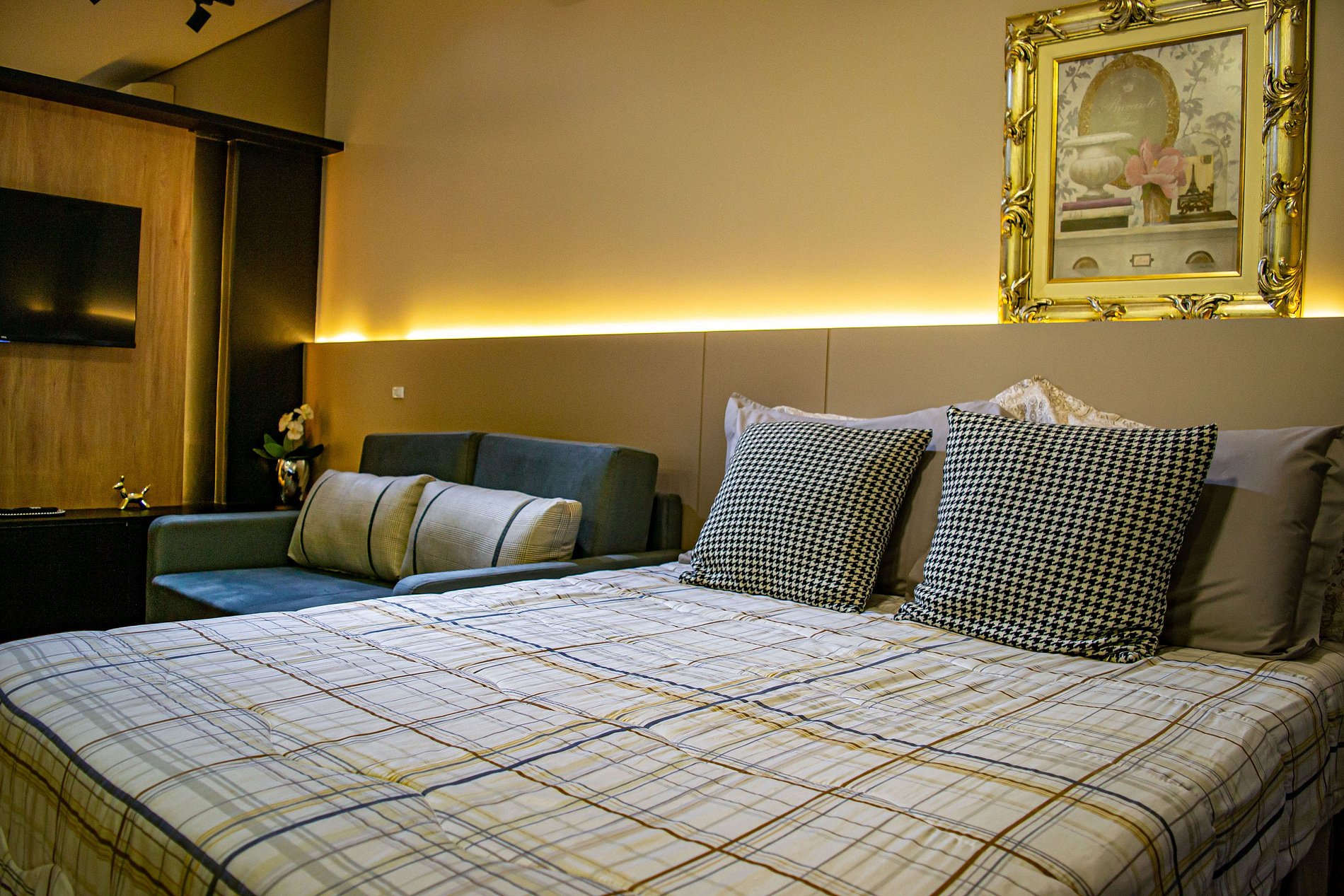 Seus apartamentos contam com cozinha equipada, Smart tv, cama confortável, ar-condicionado que refrigeram todo o espaço, central de trabalho/estudos, enxoval de cama e banho.