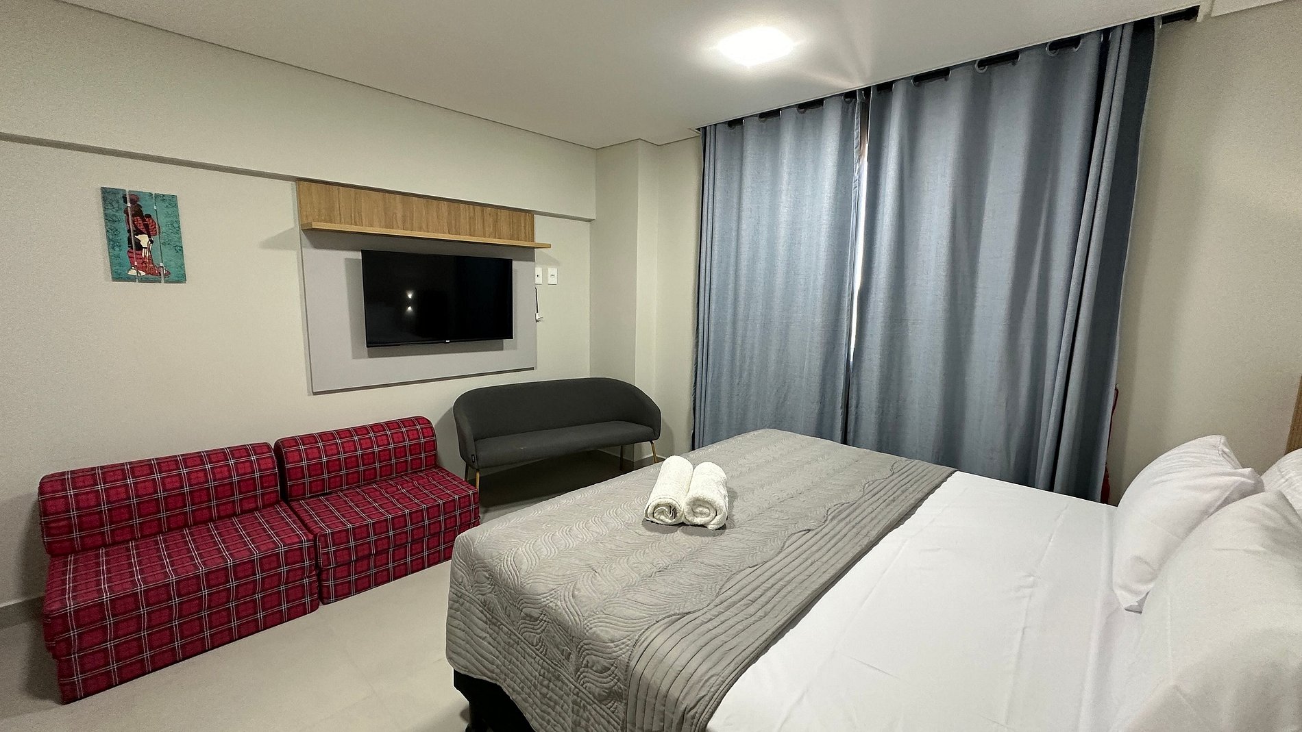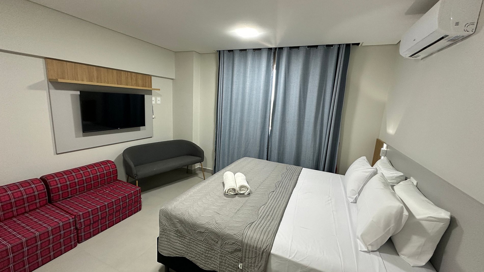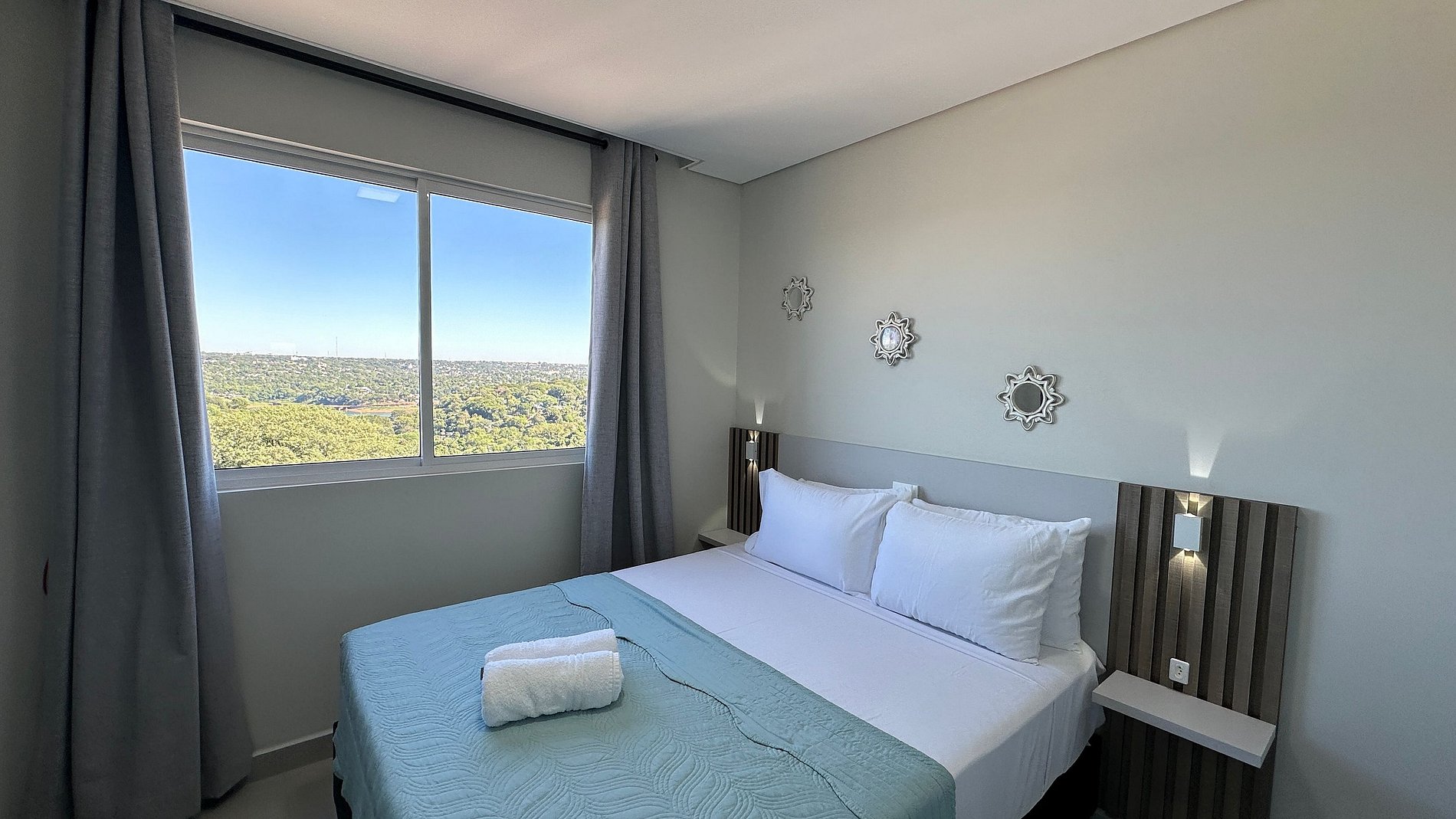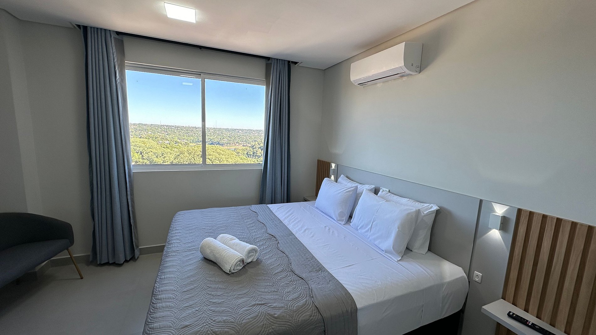 Apartamento novinho com ambientes separado por portas e ambientado com muito carinho dispondo de tudo que você precisa para uma hospedagem confortável. Situado a poucos passos da avenida General Meira, na região central de Foz do Iguaçu.