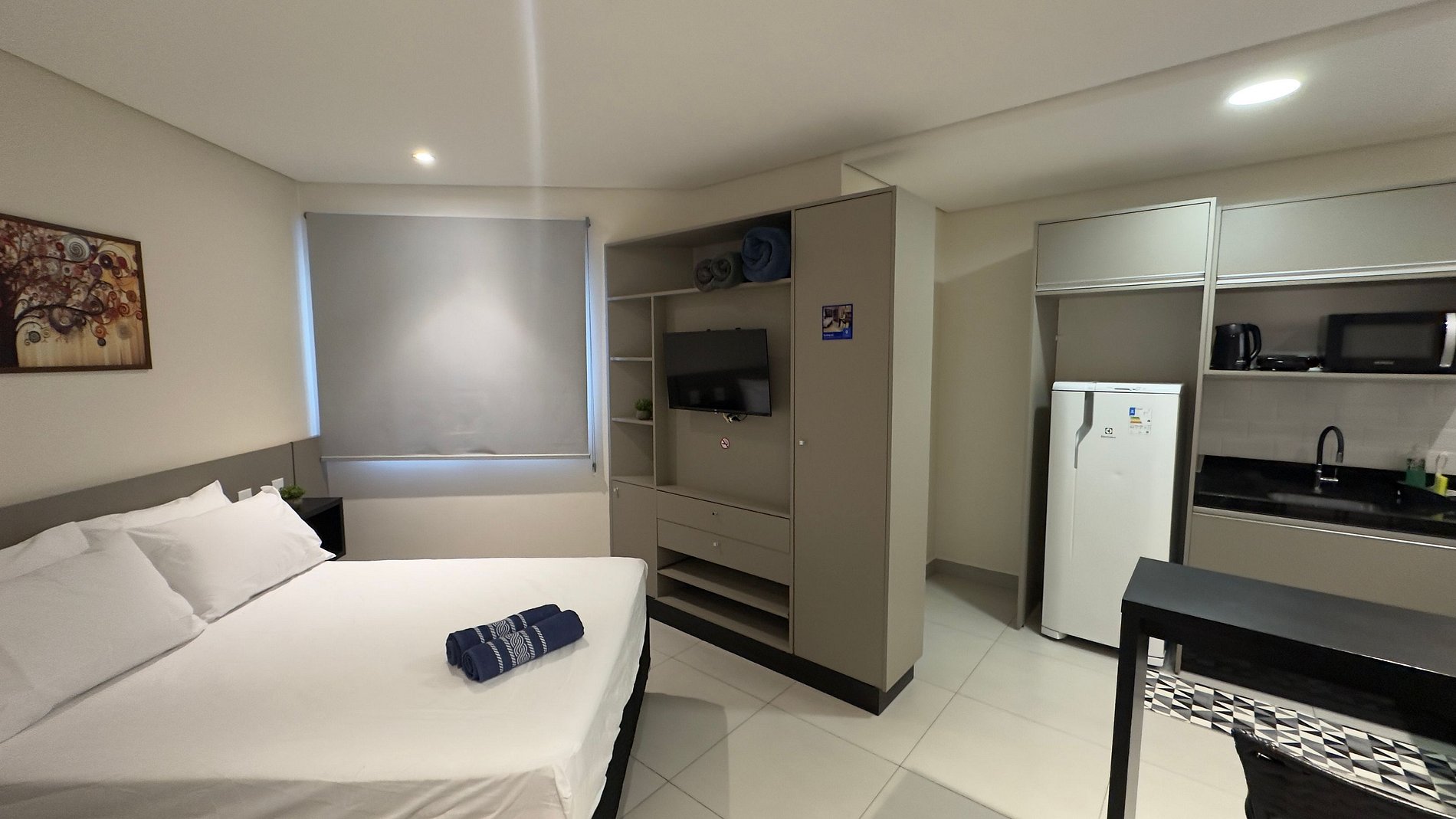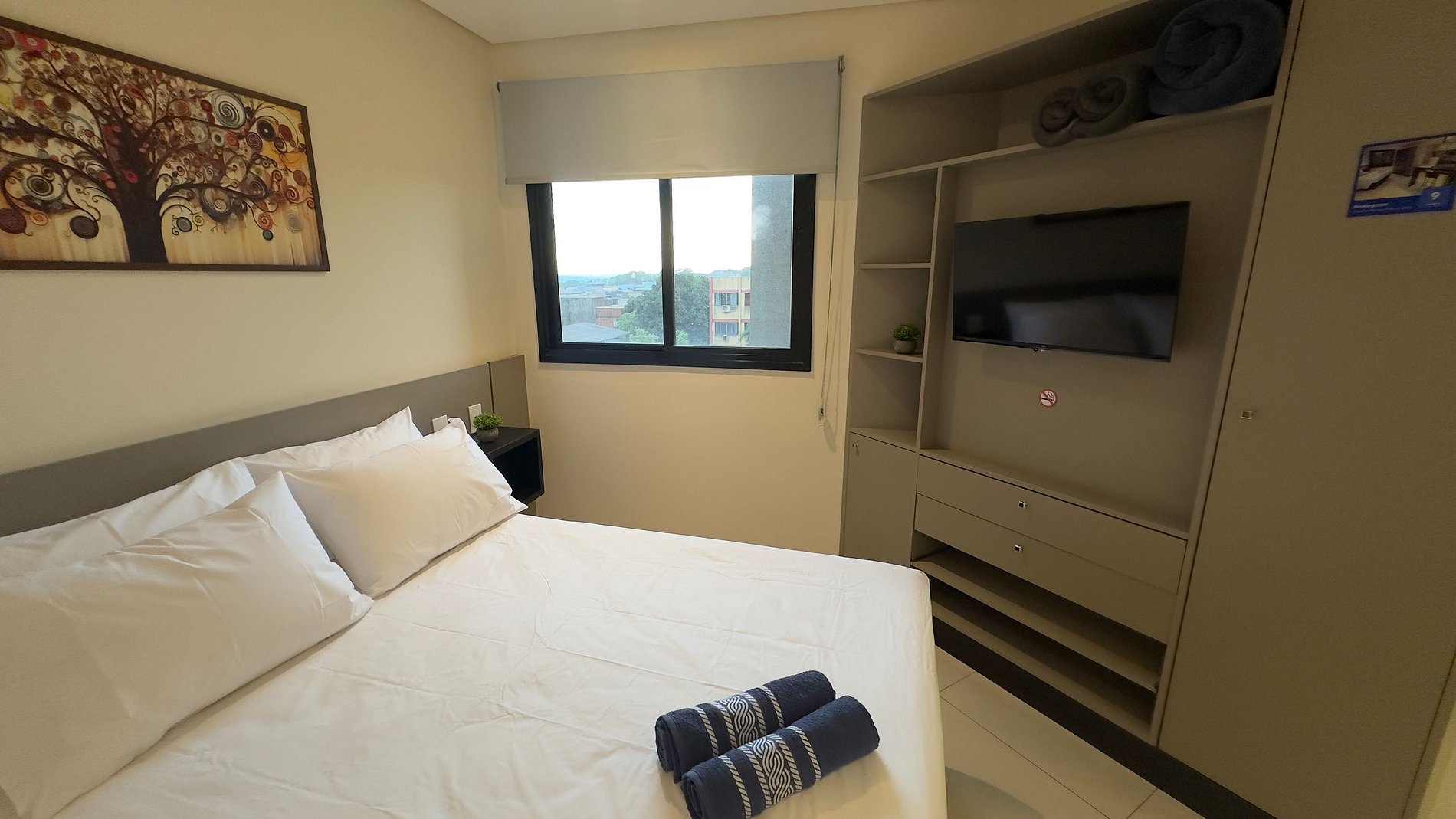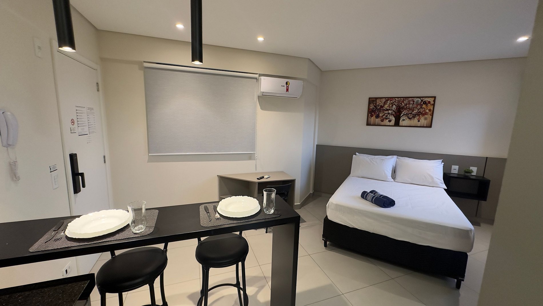 Este studio aconchegante foi pensado para quem valoriza uma estadia leve, com funcionalidade e boa localização. Situado no Edifício Rialto, na Vila Portes, ele é ideal para até 2 hóspedes que desejam descansar bem após explorar os atrativos da cidade ou fazer compras no Paraguai. O ambiente é moderno, climatizado e bem distribuído, com cama confortável, Smart TV, Wi-Fi rápido e uma cozinha equipada para refeições do dia a dia. É o lugar perfeito para relaxar com privacidade e segurança.