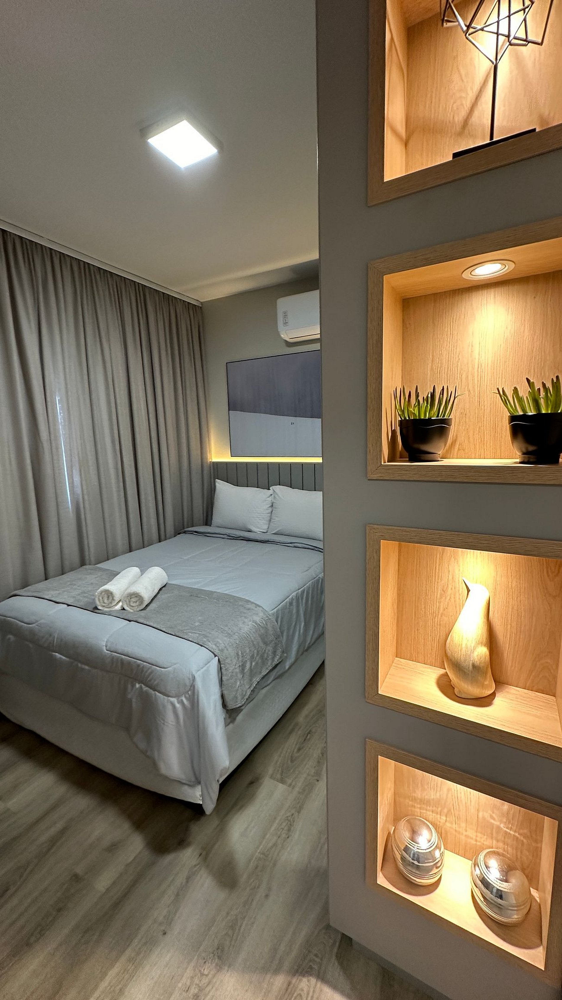 Apartamento em residencial recém entregue. Ele foi feito com o maior carinho, sofisticação e atenção para lhe receber junto com seus familiares e amigos durante a sua viagem.