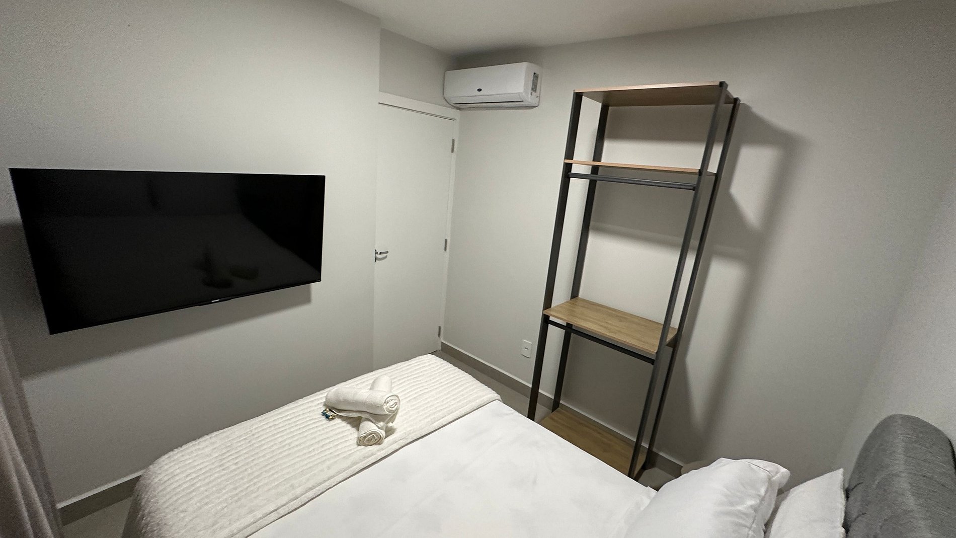 - 01 quarto com cama casal com Smart tv e armário;