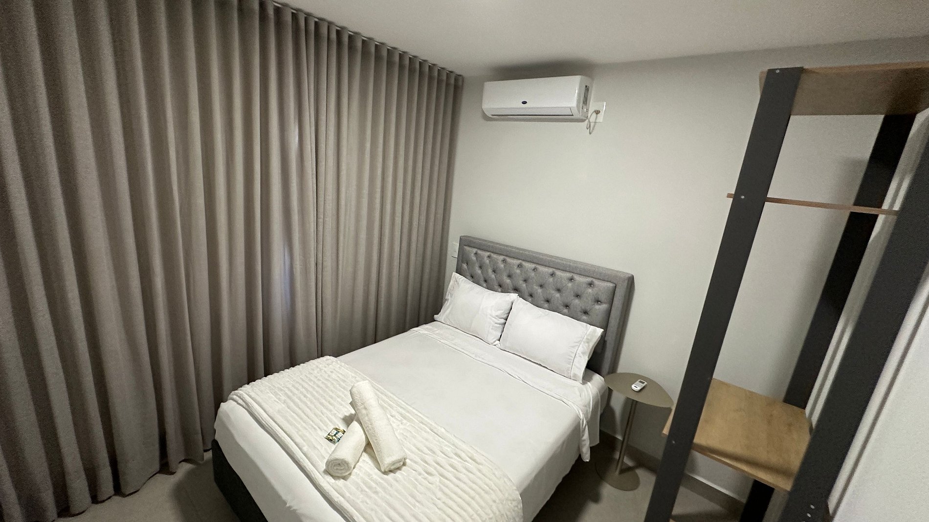 Todos os quartos e sala contém ar condicionado, itens confortável e cobertas extras.