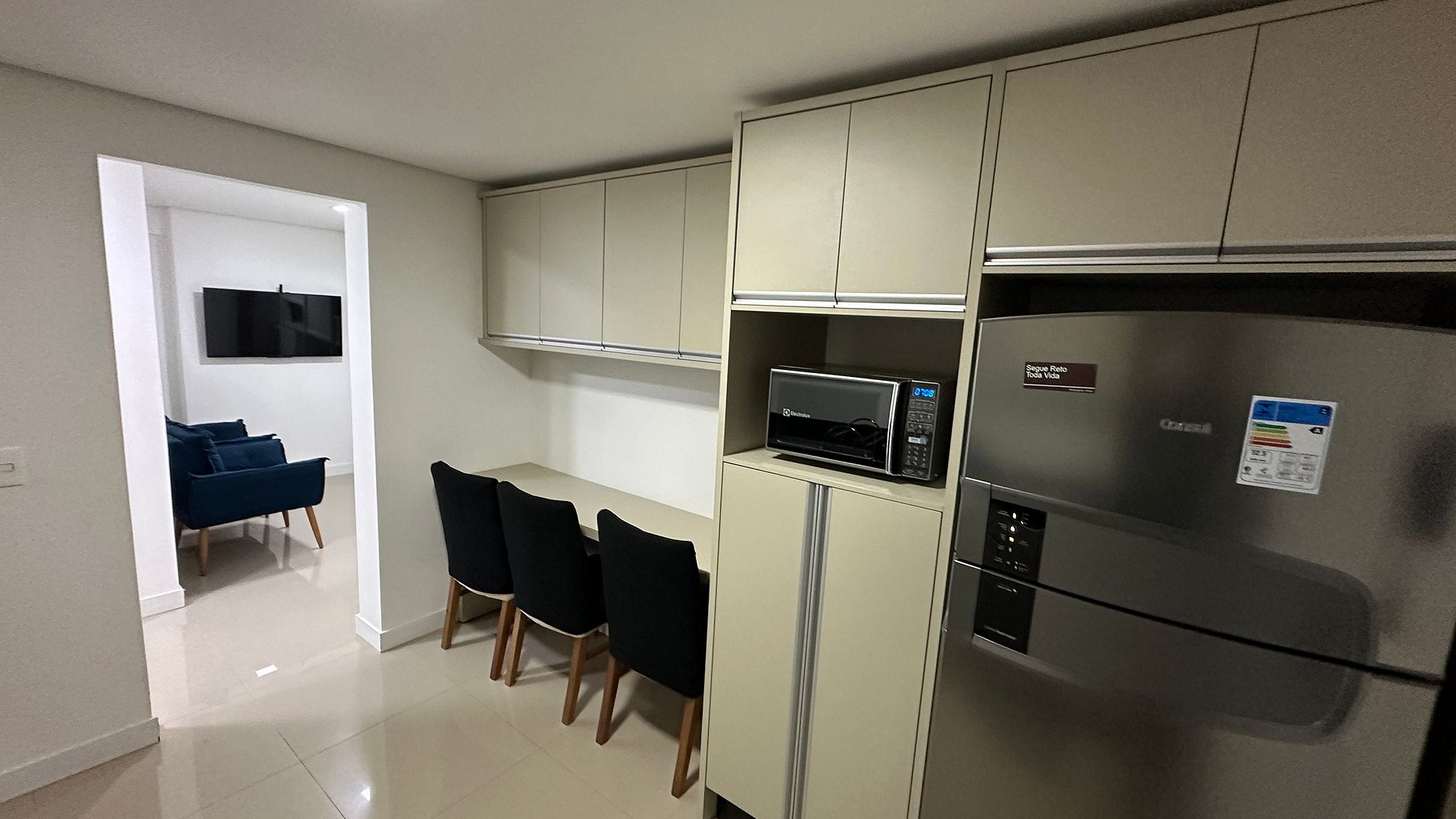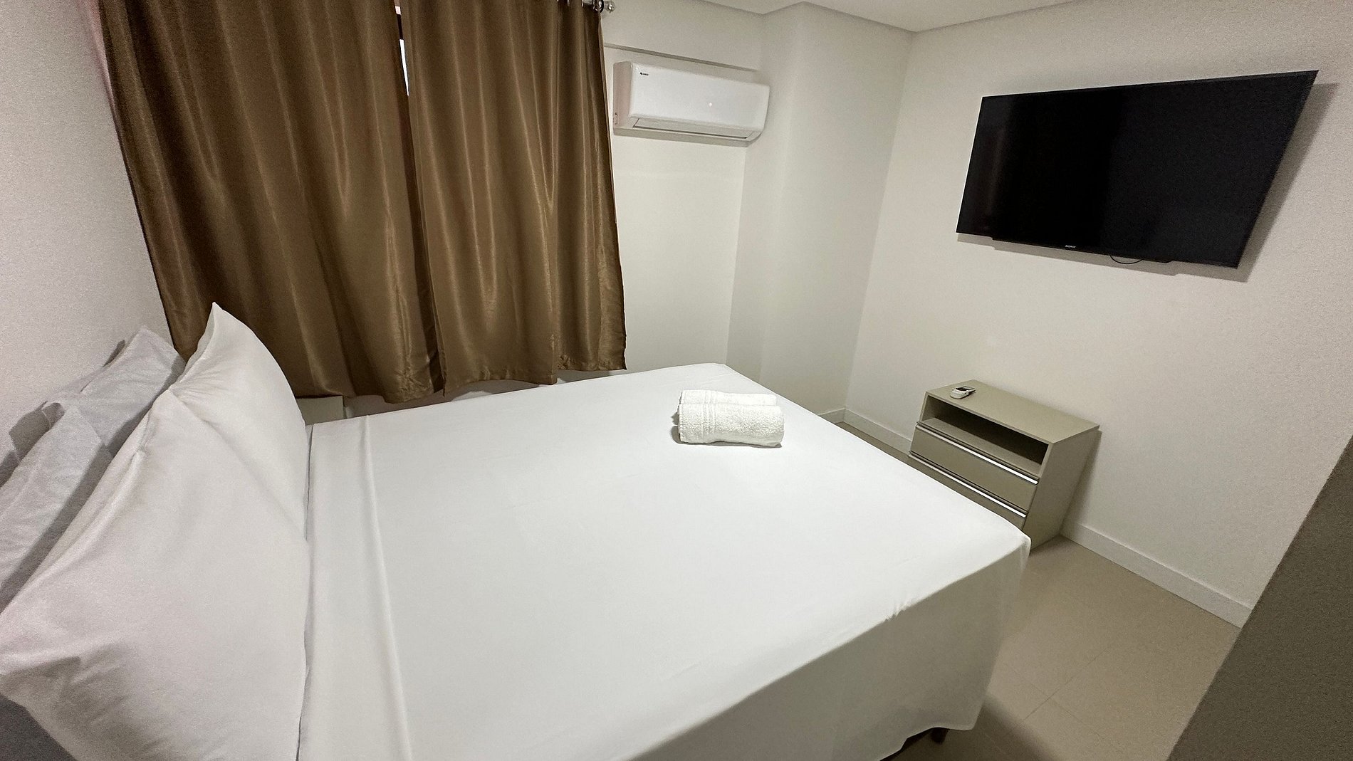 Apartamento completo: cozinha equipada com panelas, forno, geladeira e microondas, sala e quarto de casal com TV e ar condicionado , disponibilidade de roupas de cama e toalhas. Camas: 1 cama de casal no quarto e 1 triliche na sala. Apartamento no segundo andar, com acesso facilitado à piscina na área de lazer do prédio, dentre outras opções como sala de jogos climatizada.