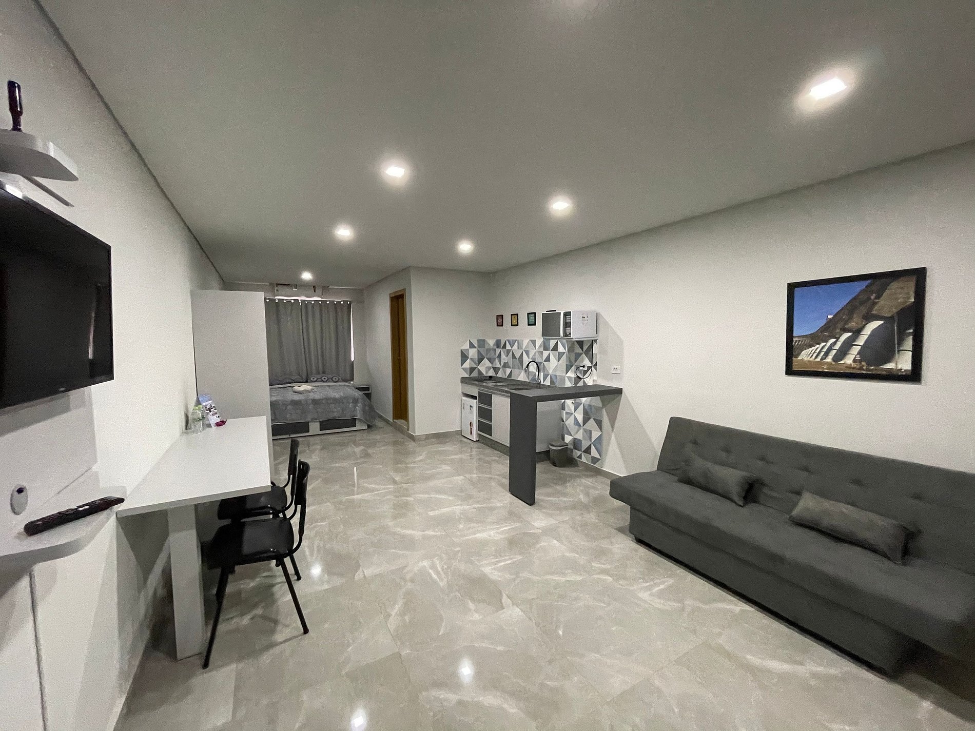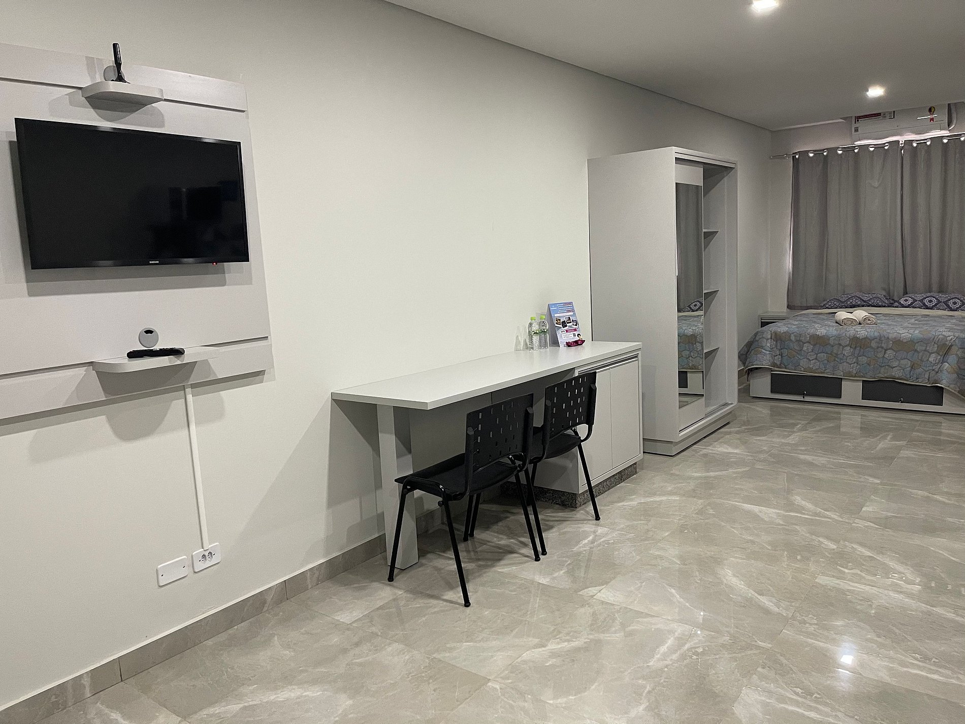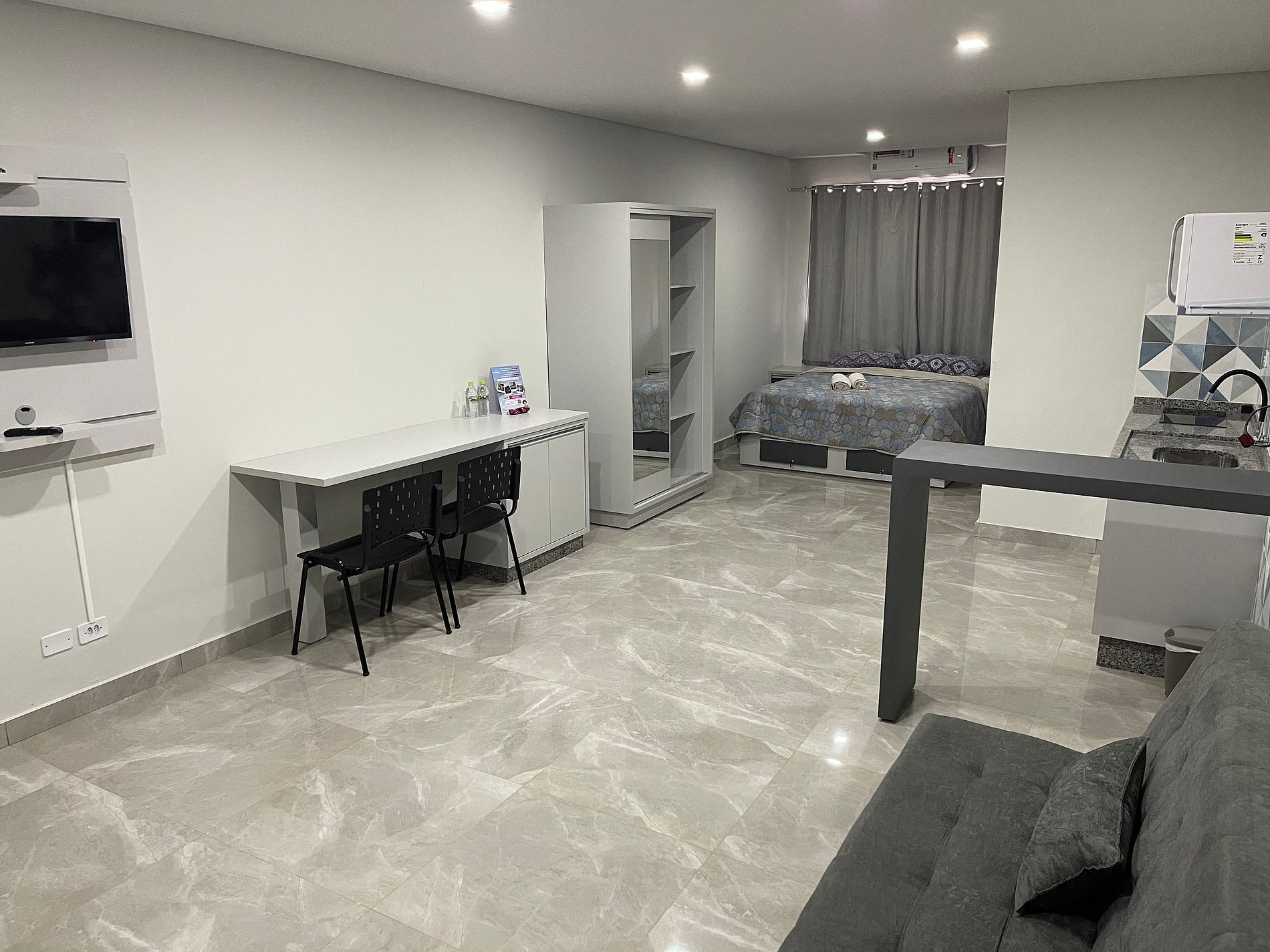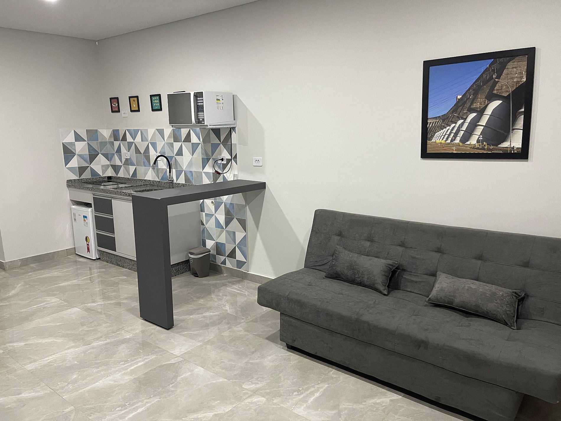 Novo apartamento Studio situado no polo comercial de Foz. A poucos metros da Ponte da Amizade, sendo uma ótima opção para quem vem conhecer Foz e comprar no Paraguai. Próximo a supermercados, posto de gasolina, lojas de conveniência, caixa eletrônico, terminal rodoviário, farmácias, lanchonetes e das principais lojas da Vila Portes