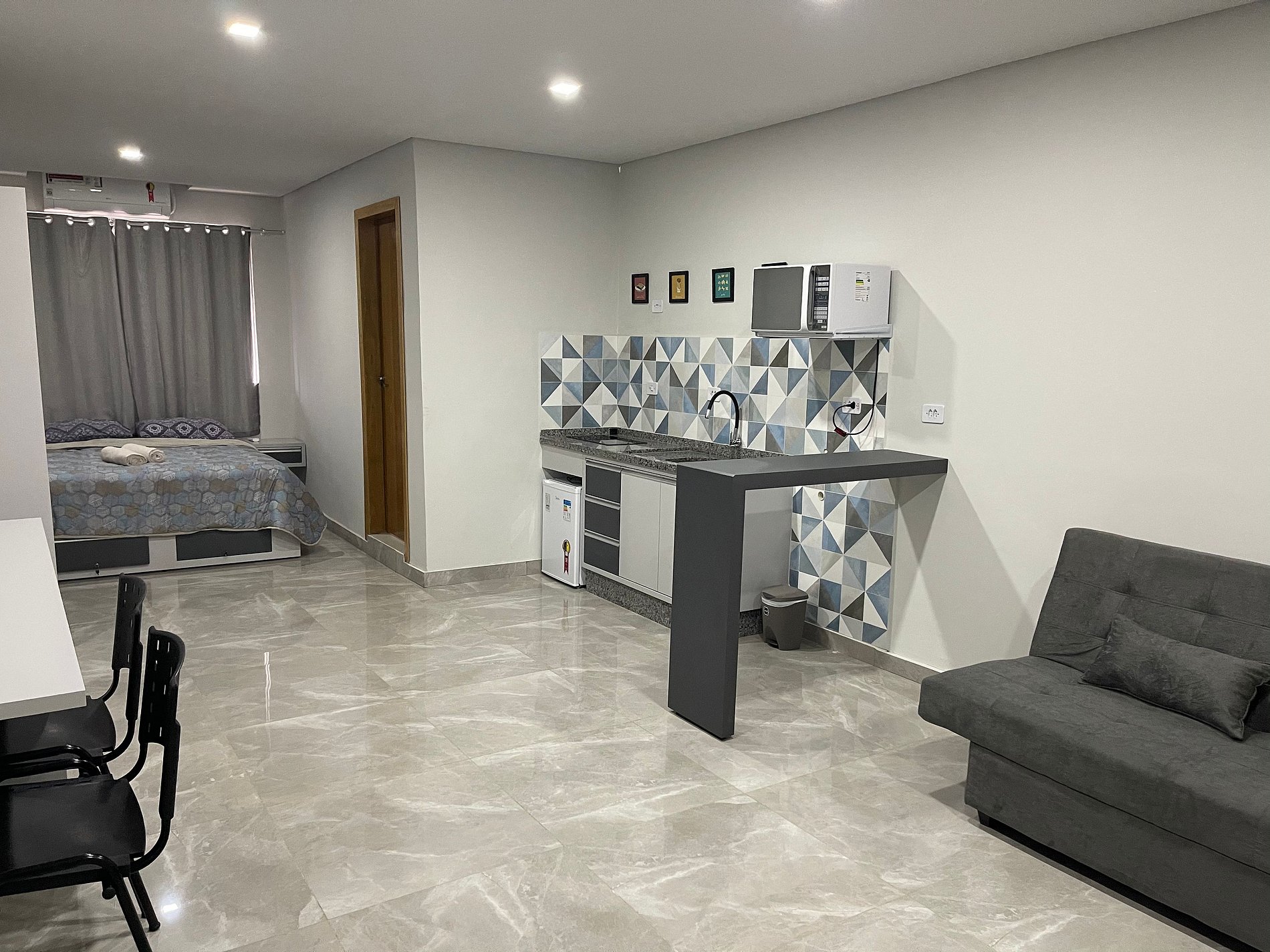 Novo apartamento Studio situado no polo comercial de Foz. A poucos metros da Ponte da Amizade, sendo uma ótima opção para quem vem conhecer Foz e comprar no Paraguai. Próximo a supermercados, posto de gasolina, lojas de conveniência, caixa eletrônico, terminal rodoviário, farmácias, lanchonetes e das principais lojas da Vila Portes
