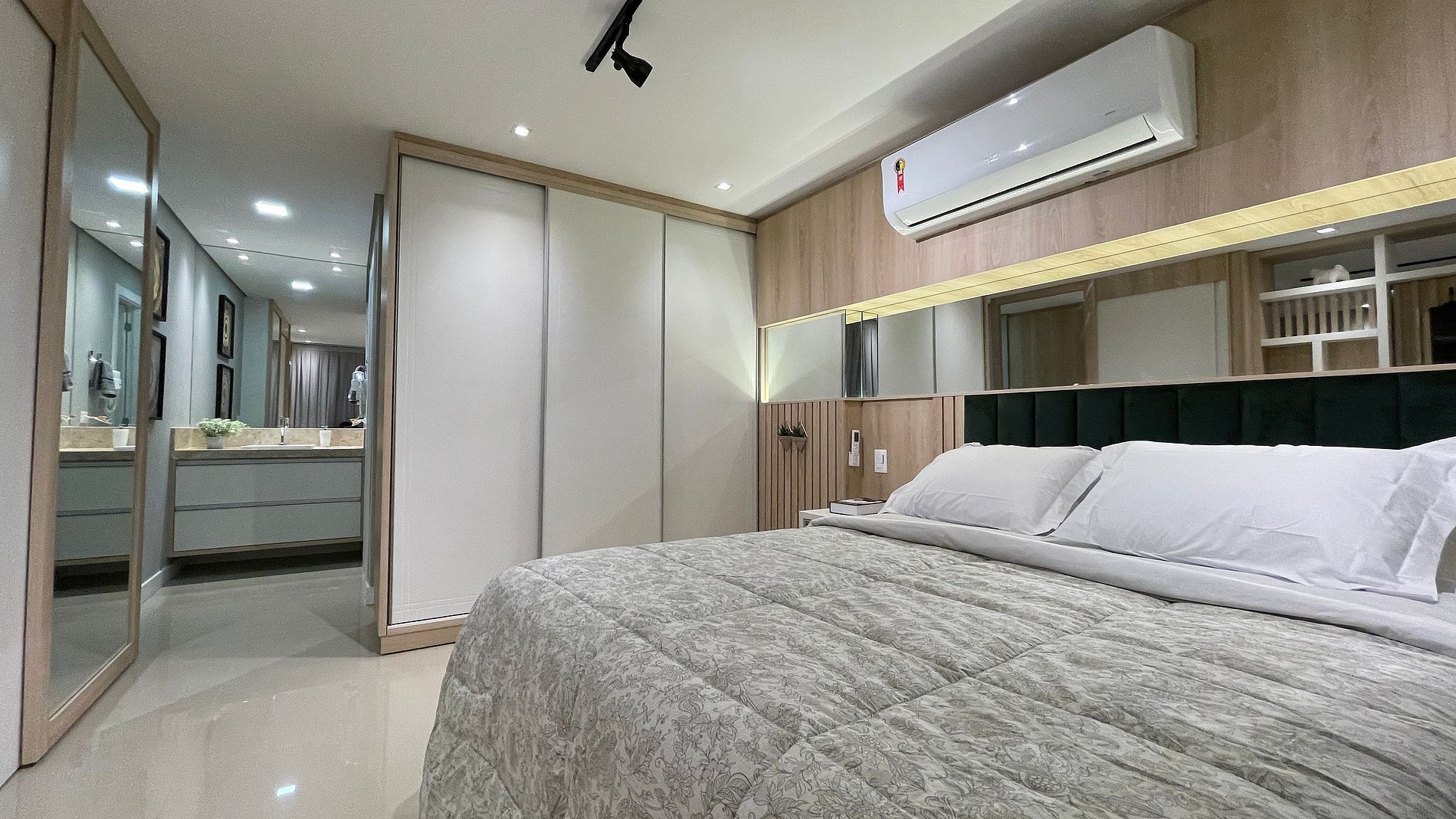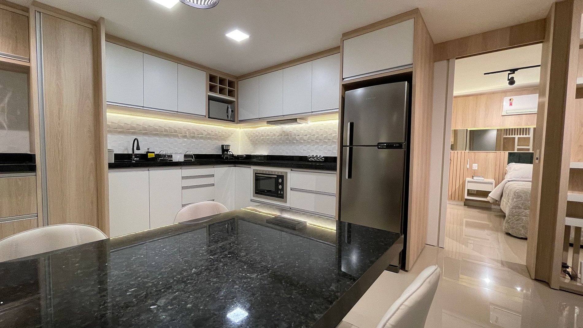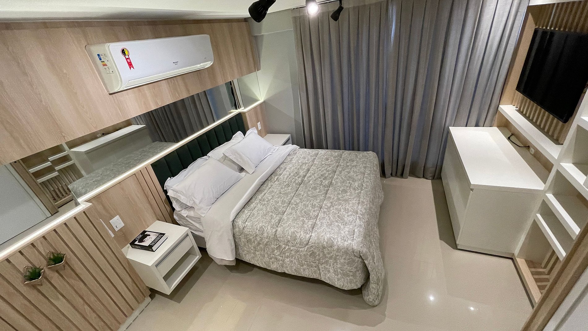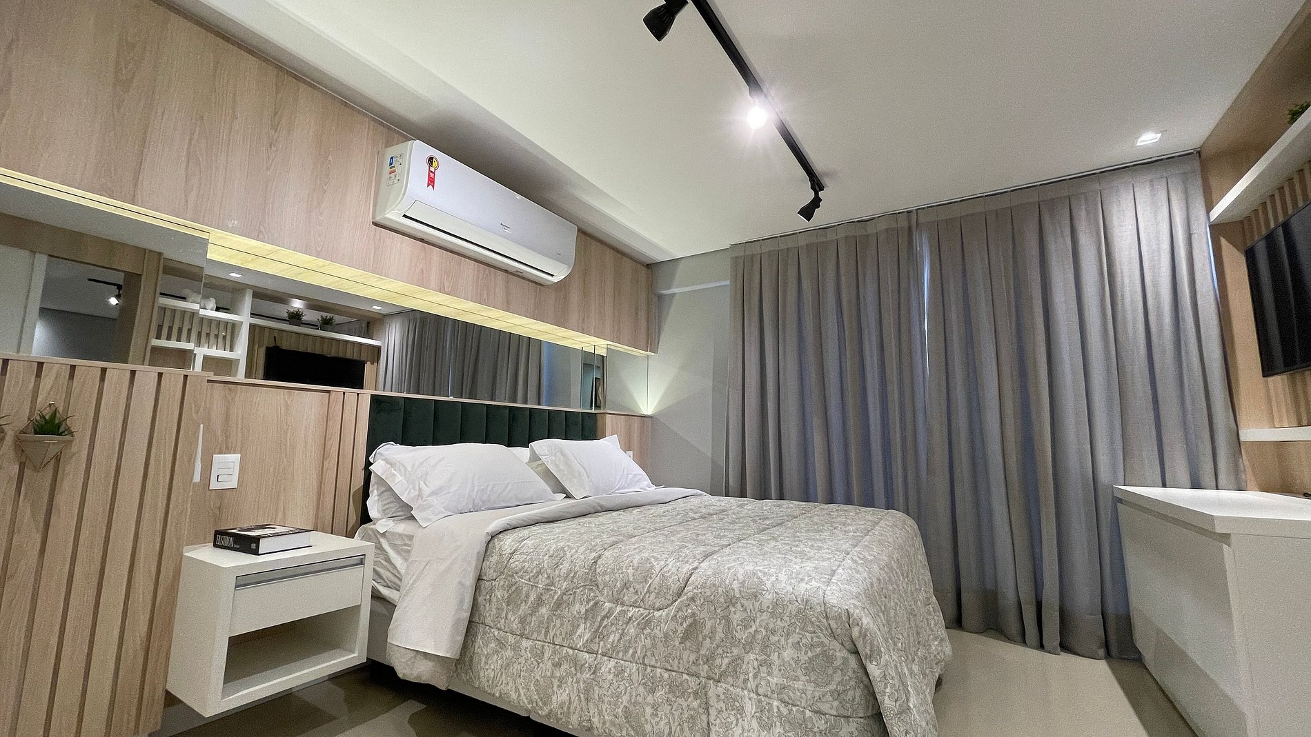 O espaço conta com: - 01 quarto com cama casal queen e armários; - 01 sala com sofá cama CONFORTÁVEL para até 02 adultos; - - 01 banheiro com ducha elétrica; - Itens de cozinha básicos; - Wi-fi Equipamentos: - Ar condicionado no quarto que refrigera todo o espaço respectivamente; - Geladeira, fogão 2 bocas de indução (elétrico), micro-ondas, liquidificador, cafeteira, sanduicheira, chaleira e forno elétricos, ferro a vapor, depurador de ar - TV Smart , com sinal de TV digital e NETFLIX ( usuário não fornecido) ; - Enxoval de cama e banho; - Enxoval de cozinha com taças de vinho , jogo de panelas , jogo de jantar e café completo, jogo de talheres e demais utensílios;