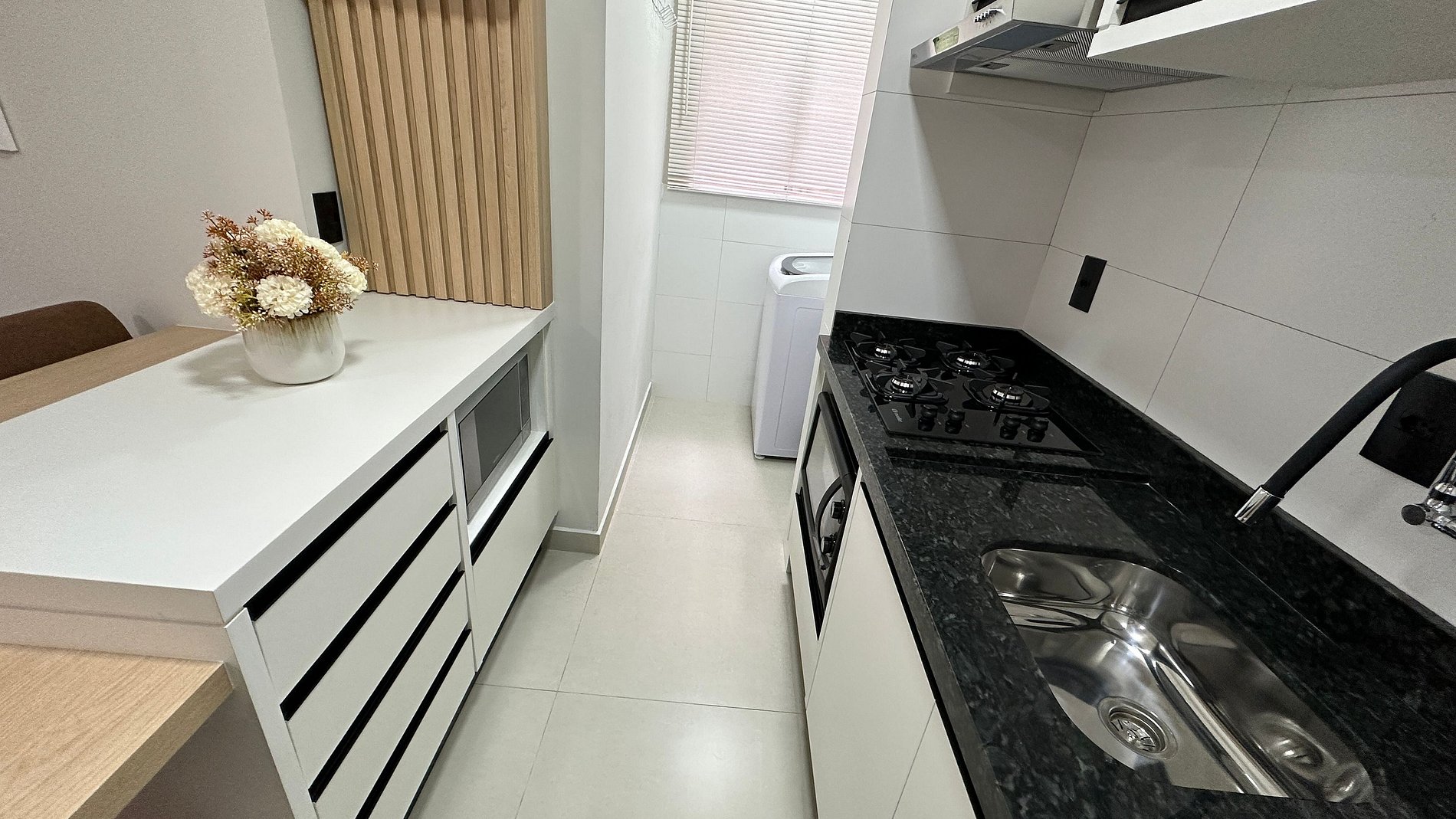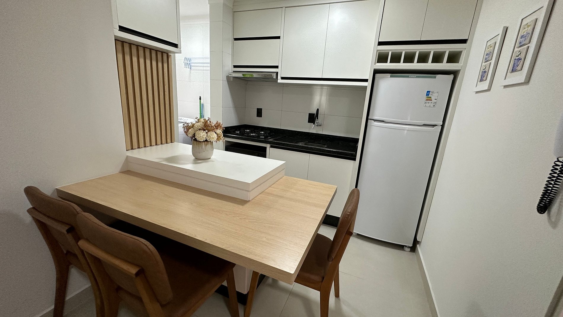 Cozinha equipada para variados tipos de cardápio sendo eles de forma rápidas, ou mais elaboradas, com Fogão com Forno a gás, Geladeira, Cafeteira italiana, microondas