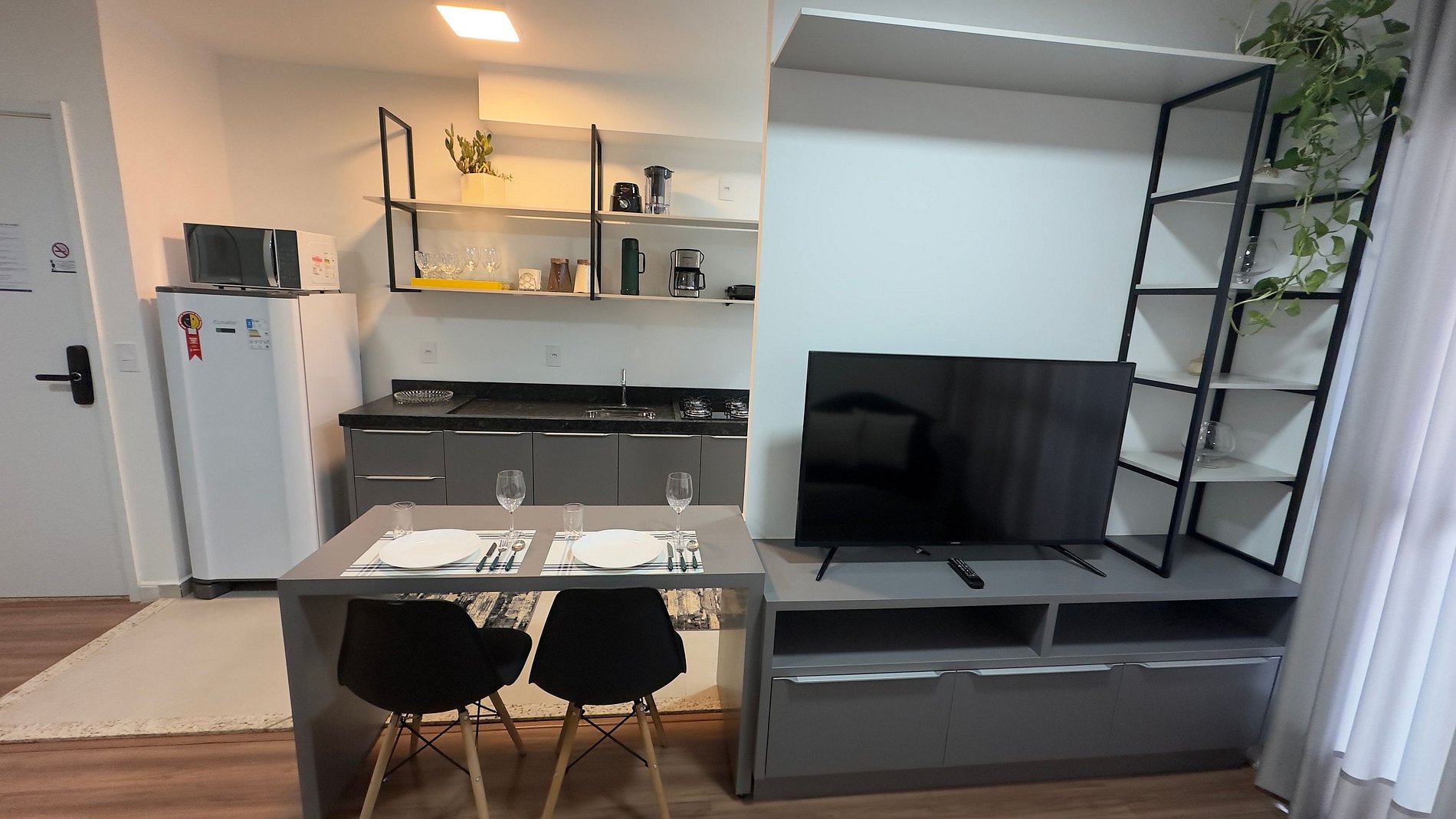 A cozinha é totalmente equipada para que você possa preparar suas refeições do dia a dia com tranquilidade. Na sala, você encontra um ambiente acolhedor, com um sofá confortável, wi-fi de alta velocidade e uma TV ampla, ideal para relaxar após um dia de passeios. Além disso, o apartamento foi decorado com muito bom gosto, oferecendo um ambiente charmoso e aconchegante. A varanda, equipada com uma mesa e churrasqueira, é perfeita para aproveitar momentos agradáveis em família.