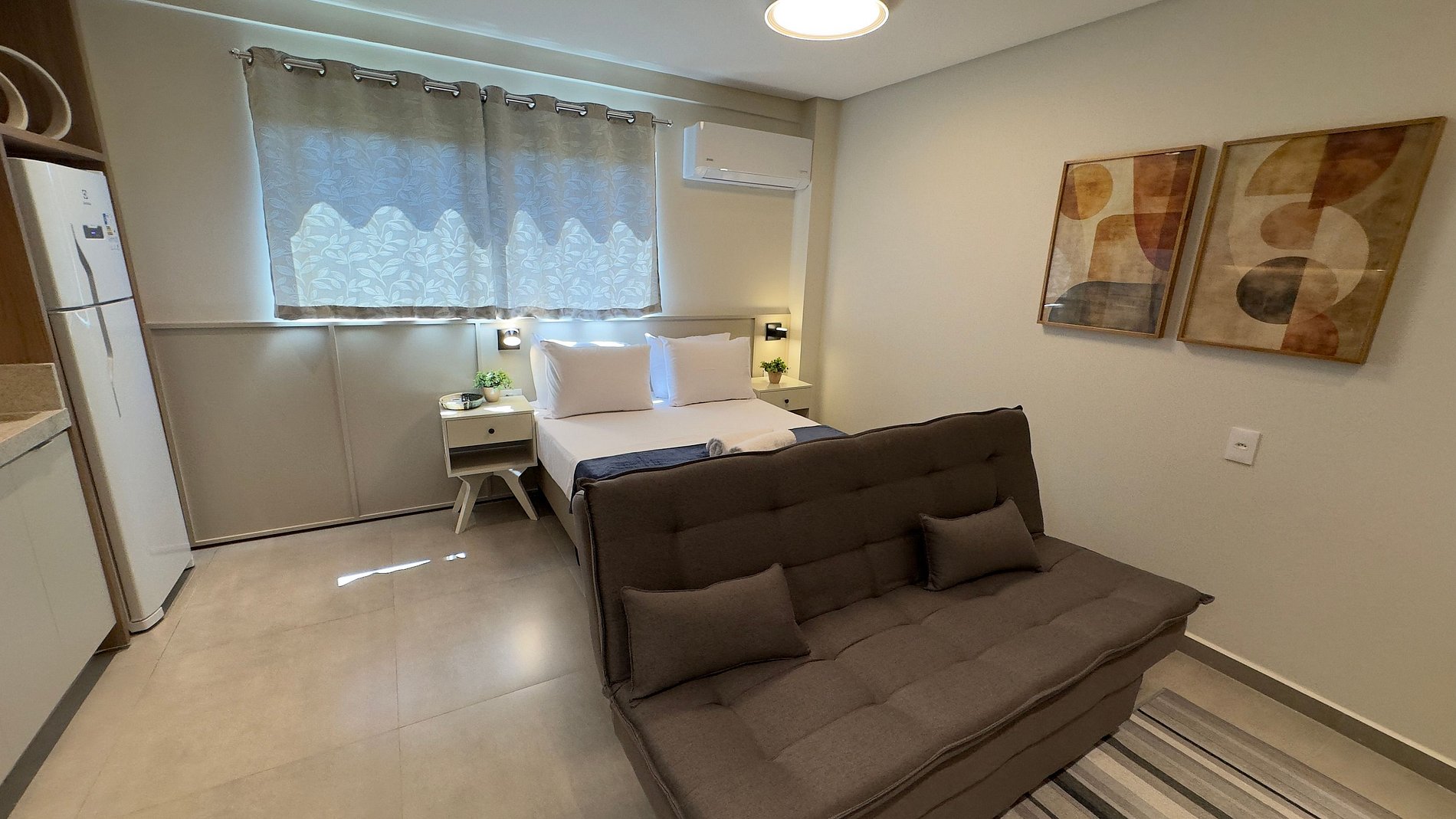 Este estúdio moderno e bem planejado é ideal para quem busca conforto, praticidade e uma excelente localização em Foz do Iguaçu. O espaço é compacto, funcional e muito bem iluminado, com mobiliário contemporâneo e acabamento de qualidade, pensado tanto para estadias curtas quanto mais longas.