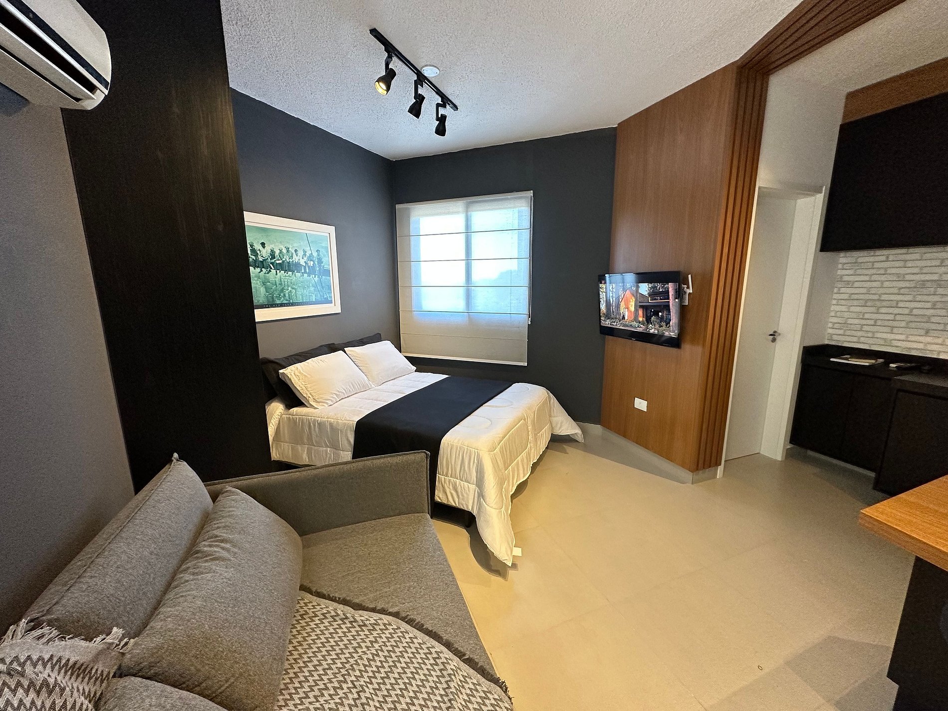 Novo apartamento Studio situado no polo comercial de Foz. A poucos metros da Ponte da Amizade, sendo uma ótima opção para quem vem conhecer Foz e comprar no Paraguai. Próximo a supermercados, posto de gasolina, lojas de conveniência, caixa eletrônico, terminal rodoviário, farmácias, lanchonetes e das principais lojas da Vila Portes.