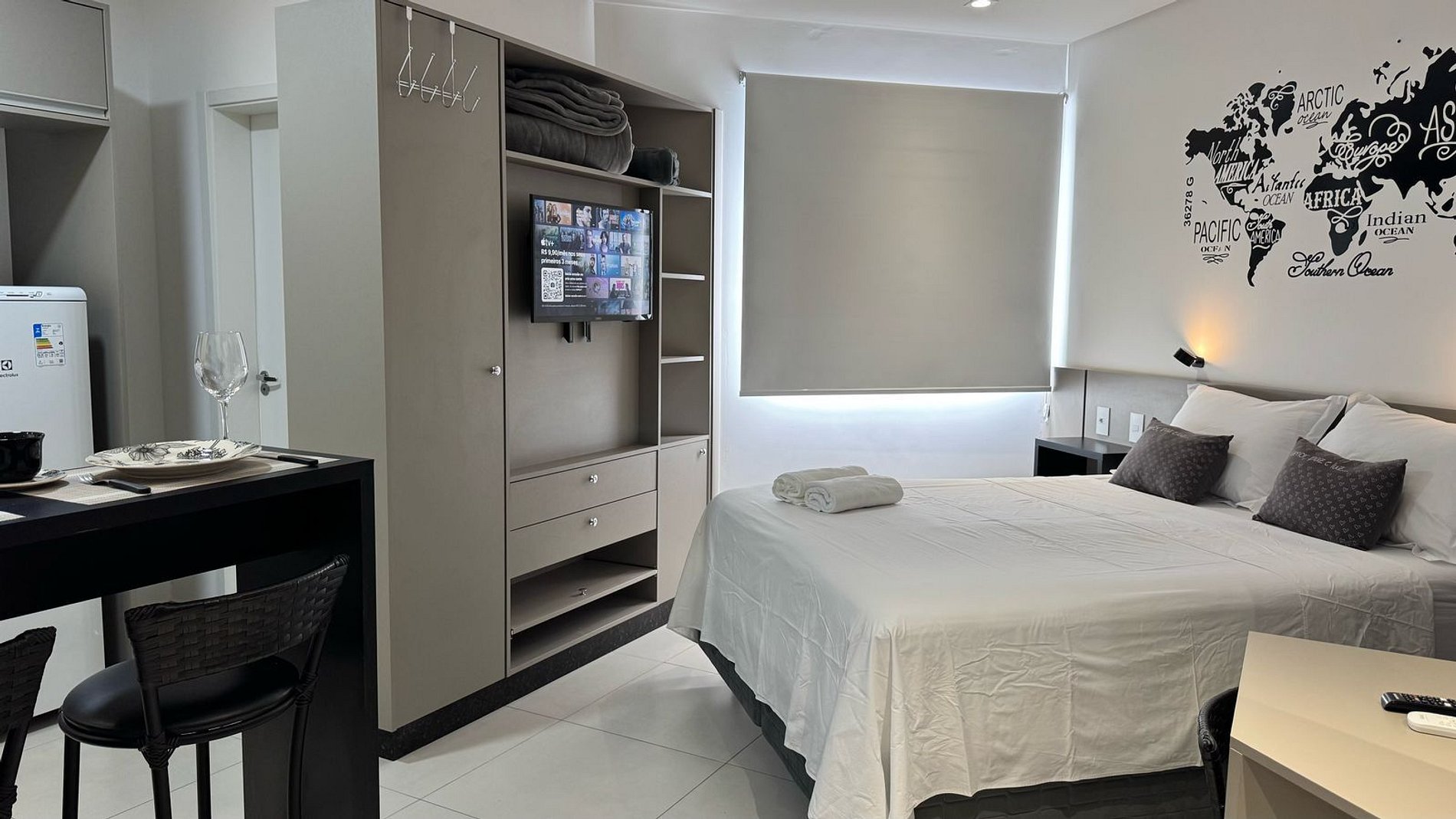 Novo apartamento Studio situado no polo comercial de Foz. A poucos metros da Ponte da Amizade, sendo uma ótima opção para quem vem conhecer Foz e comprar no Paraguai. Próximo a supermercados, posto de gasolina, lojas de conveniência, caixa eletrônico, terminal rodoviário, farmácias, lanchonetes e das principais lojas da Vila Portes.