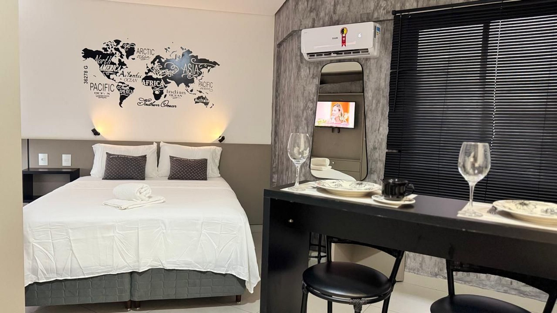 Para quem vem a turismo também é uma ótima opção. O prédio fica próximo a Mesquita, de fácil acesso ao trajeto da Itaipu, templo Budista e rota para as Cataratas e outros pontos turísticos. O apartamento é equipado com cozinha completa, cama confortável casal, mesa para trabalhos e refeições, TV, ar-condicionado,Chuveiro elétrico, lavanderia com máquina de lavar e secar no prédio (cobrado cada ciclo com a opção Pay-for-use), jogo de cama e banho, Wi-fi.