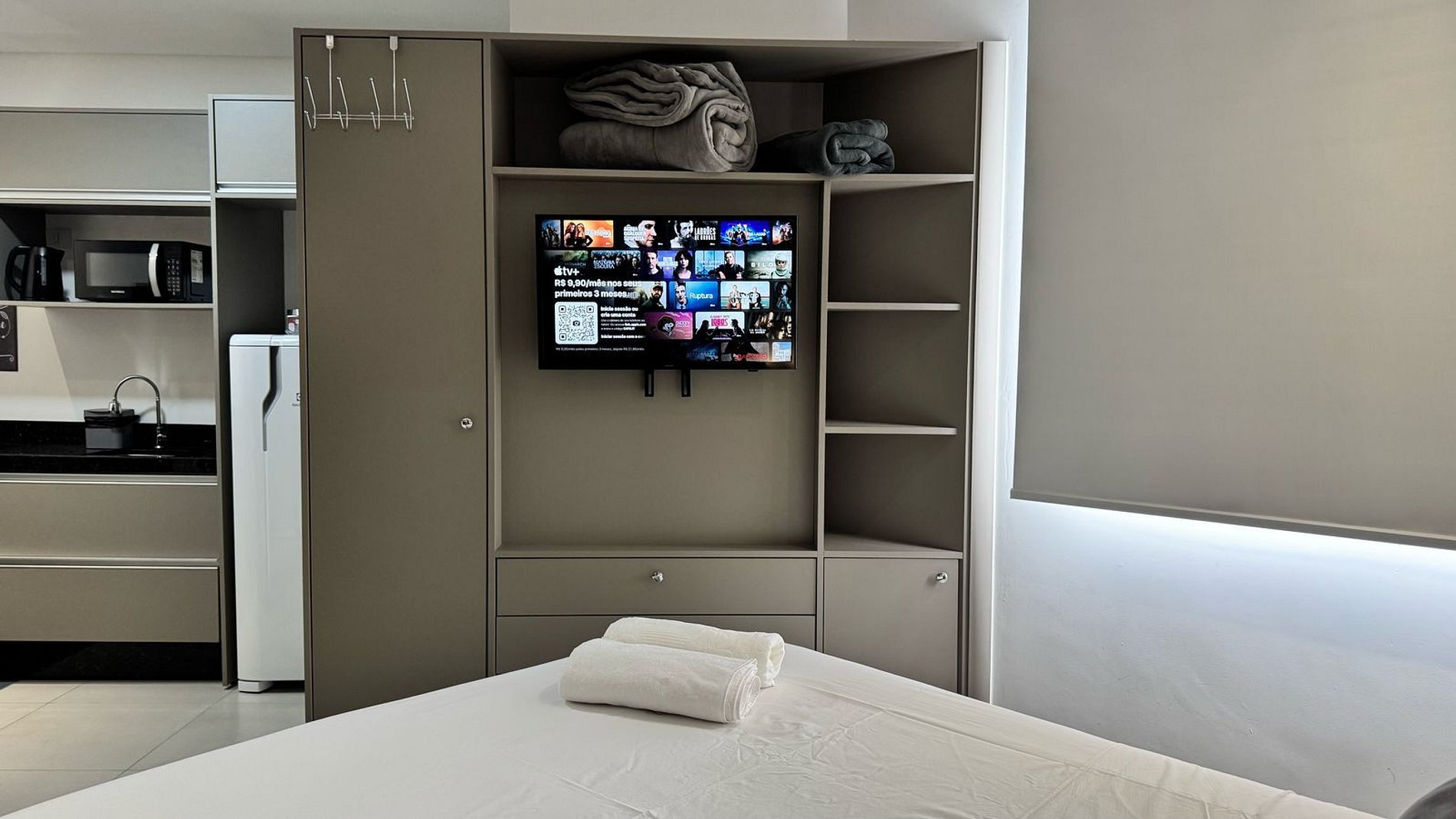 Novo apartamento Studio situado no polo comercial de Foz. A poucos metros da Ponte da Amizade, sendo uma ótima opção para quem vem conhecer Foz e comprar no Paraguai. Próximo a supermercados, posto de gasolina, lojas de conveniência, caixa eletrônico, terminal rodoviário, farmácias, lanchonetes e das principais lojas da Vila Portes.