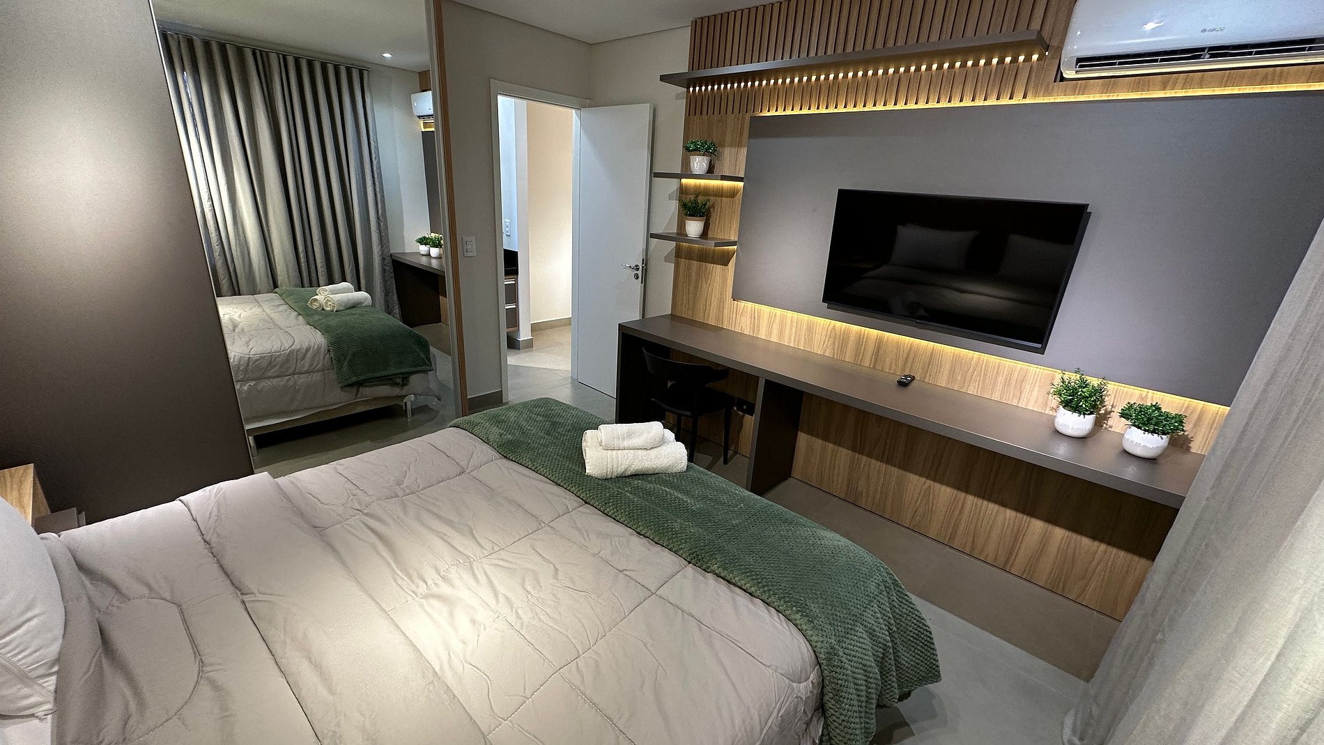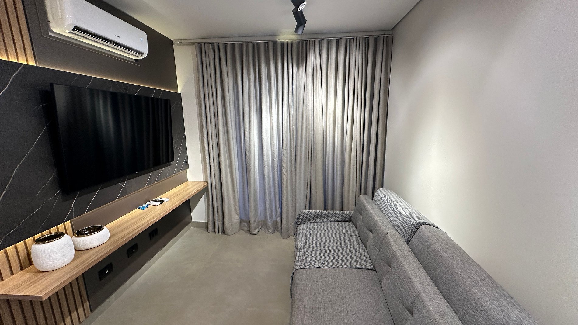Ao lado da Caixa econômica e supermercado, sua localização possibilita acesso rápido e fácil aos principais pontos turísticos da cidade por meio de transporte público, dentre outros. O espaço conta com: - 01 vaga de garagem ; - 01 quarto com cama casal e armários; - 01 sala com sofá cama CONFORTÁVEL para até 02 adultos; - 01 banheiro com ducha aquecida ; - Cozinha completa; - Wi-fi Equipamentos: - Ar condicionado na sala e quarto; - Geladeira, fogão 2 bocas por indução , micro-ondas, sanduicheira, chaleira, ferro - TV Smart( quarto e sala); - Enxoval de cama e banho; - Enxoval de cozinha com, jogo de panelas, jogo de jantar e café completo, jogo de talheres e demais utensílios; Infraestrutura do condomínio: ; -Portaria com acesso por botton eletrônico; O atendimento aos hóspedes será sempre que necessário e solicitado. Check-in flexível a partir das 15h e Checkout até às 10h. O apartamento está a poucos metros da avenida Jorge Schimmelpfeng, conhecida como Avenida Gastronômica e que também dá acesso às principais avenidas da cidade. Nela, estão diversas opções gastronômicas tais como: choperias, petiscarias, comida japonesa, steak house, frutos do mar, massas etc. E um pouco mais distante, a cerca de 1,2 km, temos o Zeppelin Old Bar, que combina boa música e boa comida, e quase em frente, para quem curte chopp artesanal, tem o Eden Steak Garden e Chopperia. Acesso ao transporte público a uma quadra, inclusive para a Argentina e Paraguai.