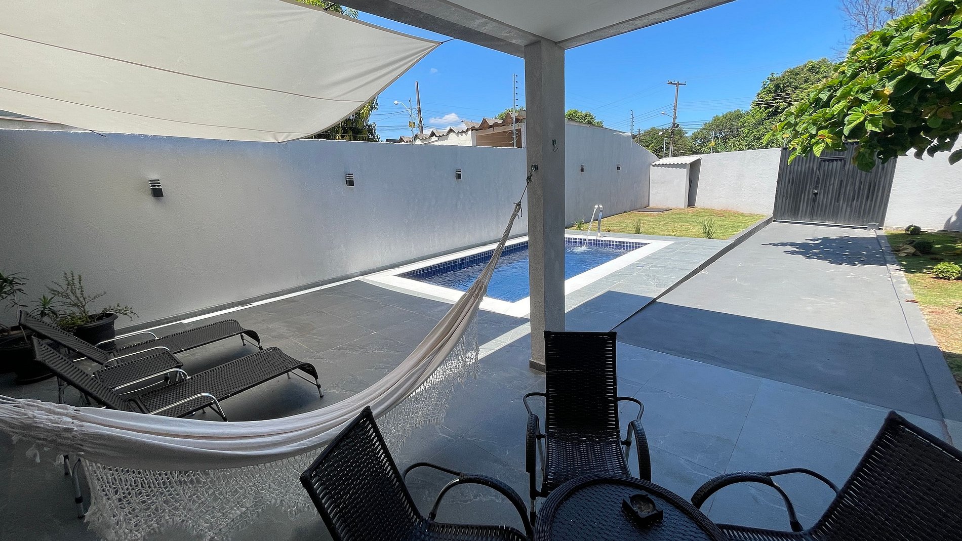 Todos os itens das fotos estão disponíveis na acomodação. Casa inteira com 3 quartos, sendo uma suíte, 1 banheiro e um lavabo. Ampla cozinha e área Gourmet para excelente churrascos em frente a piscina com o ambiente aberto , sala de jantar, sala de estar/TV, lavanderia com máquina de lavar, garagem para até 3 carros.