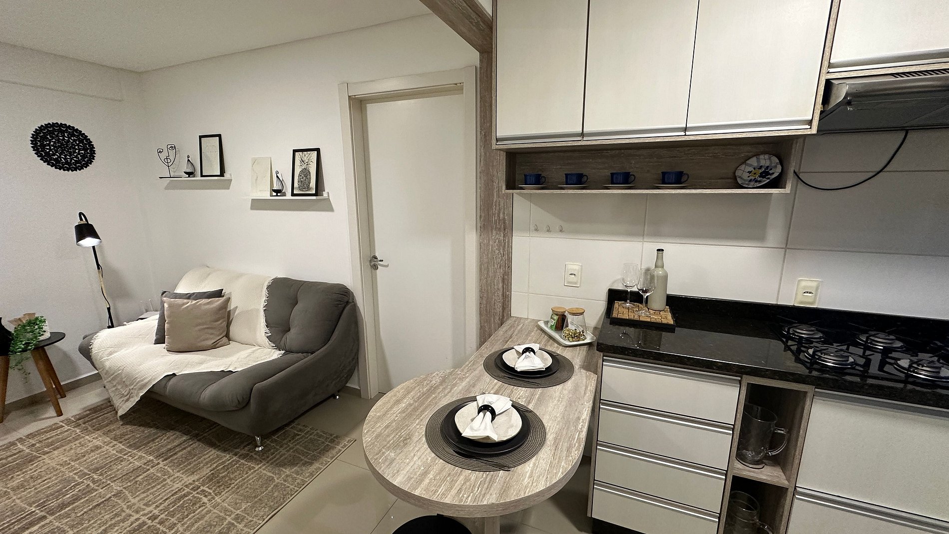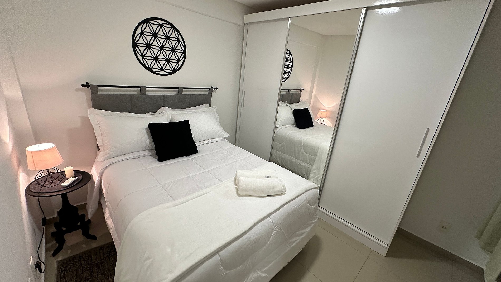 Todos os itens das fotos estão disponíveis na acomodação. Apartamento inteiro com 01 quarto suíte, uma sala de estar e jantar, cozinha equipada (equipamentos para preparo de comidas do dia a dia) e um pequeno espaço perfeito para homeoffice