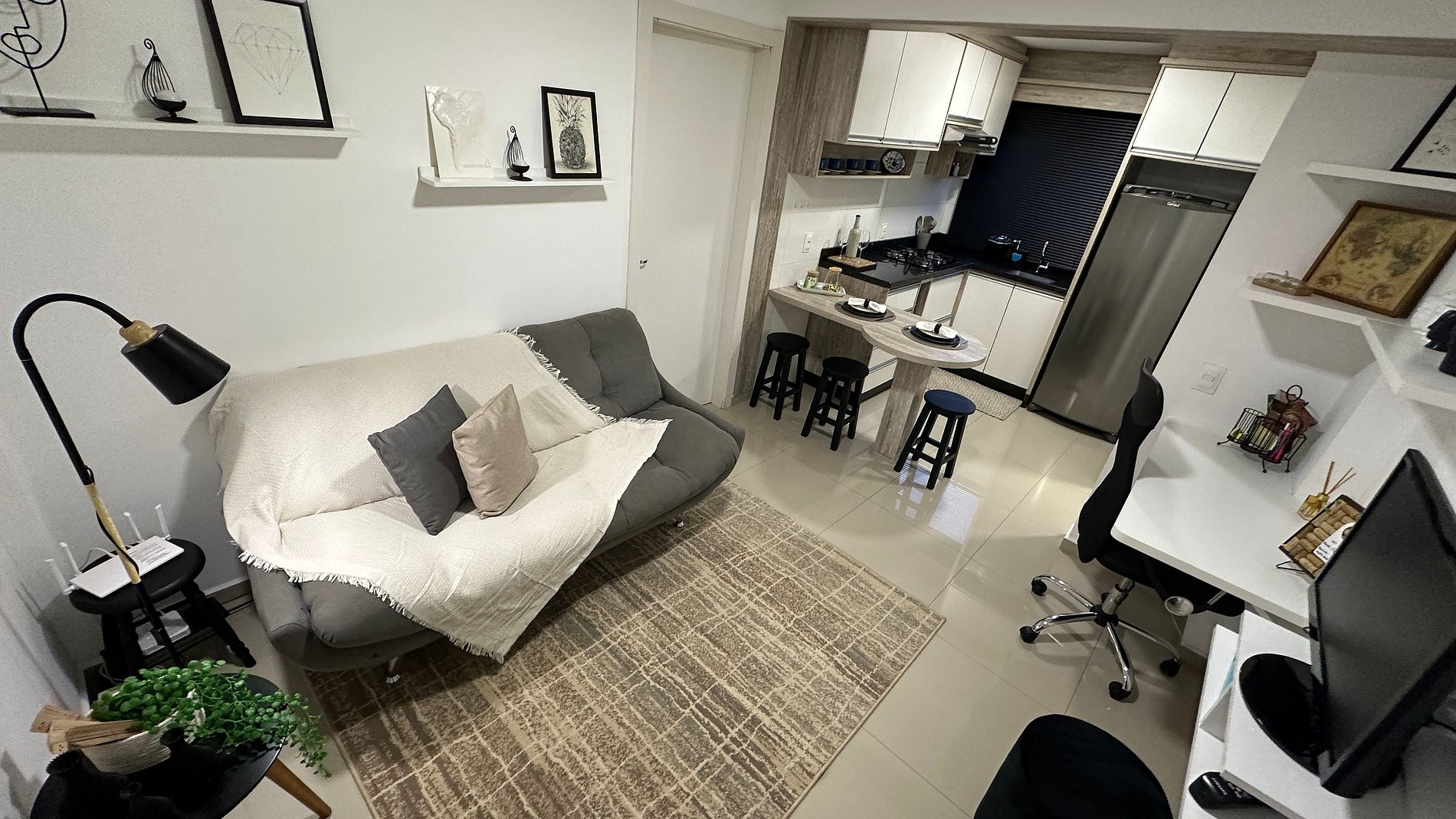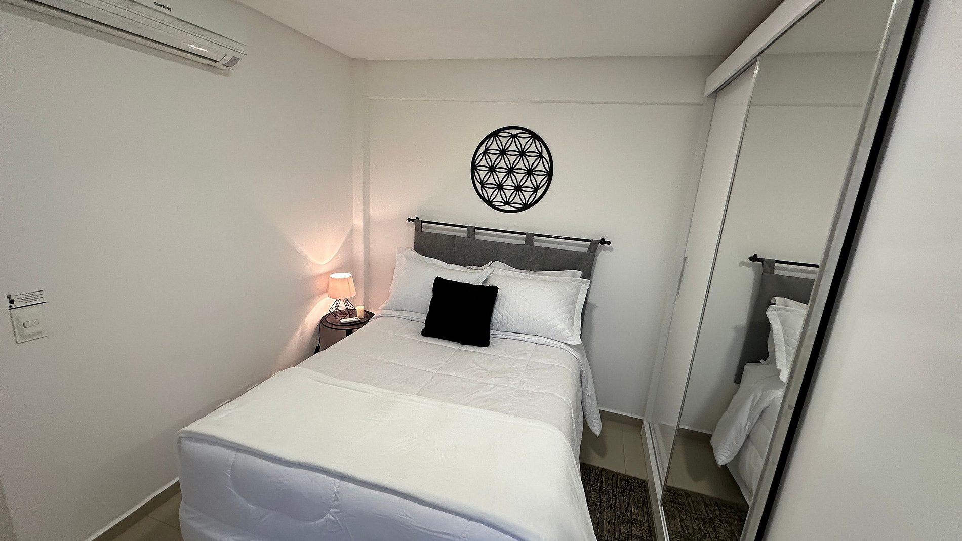 Todos os itens das fotos estão disponíveis na acomodação. Apartamento inteiro com 01 quarto suíte, uma sala de estar e jantar, cozinha equipada (equipamentos para preparo de comidas do dia a dia) e um pequeno espaço perfeito para homeoffice