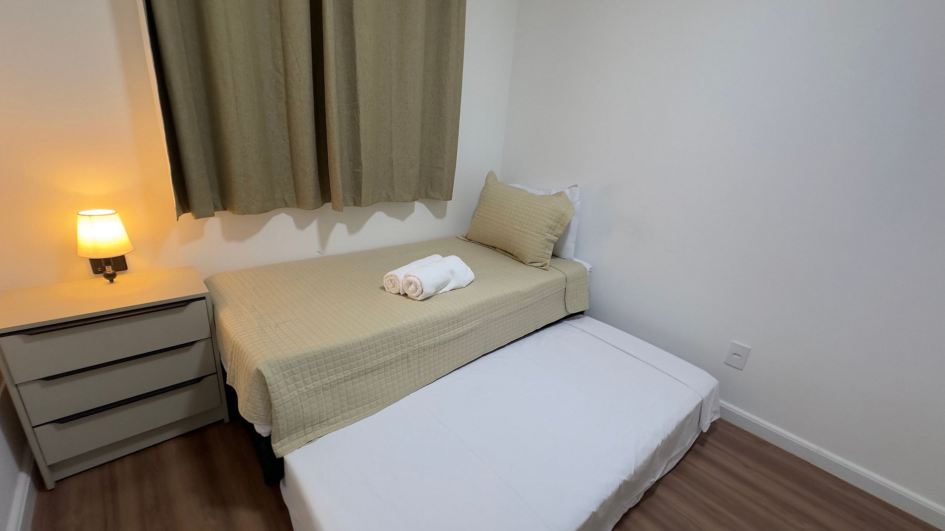 Este apartamento de temporada é um verdadeiro refúgio de conforto no coração de Foz do Iguaçu, localizado no charmoso bairro Vila Yolanda. Situado no décimo andar, o imóvel conta com dois quartos muito bem planejados: um deles com uma cama queen confortável e o outro possui uma cama de solteiro e um colchão de solteiro ( bi-cama). Há também um banheiro social para maior praticidade.