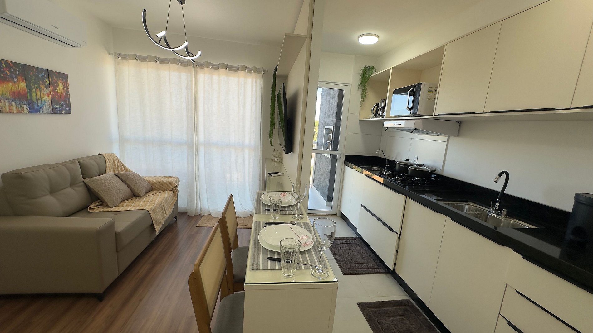 A cozinha é totalmente equipada para que você possa preparar suas refeições do dia a dia com tranquilidade. Na sala, você encontra um ambiente acolhedor, com um sofá confortável, wi-fi de alta velocidade e uma TV ampla, ideal para relaxar após um dia de passeios. Além disso, o apartamento foi decorado com muito bom gosto, oferecendo um ambiente charmoso e aconchegante. A varanda, equipada com uma mesa e churrasqueira, é perfeita para aproveitar momentos agradáveis em família.