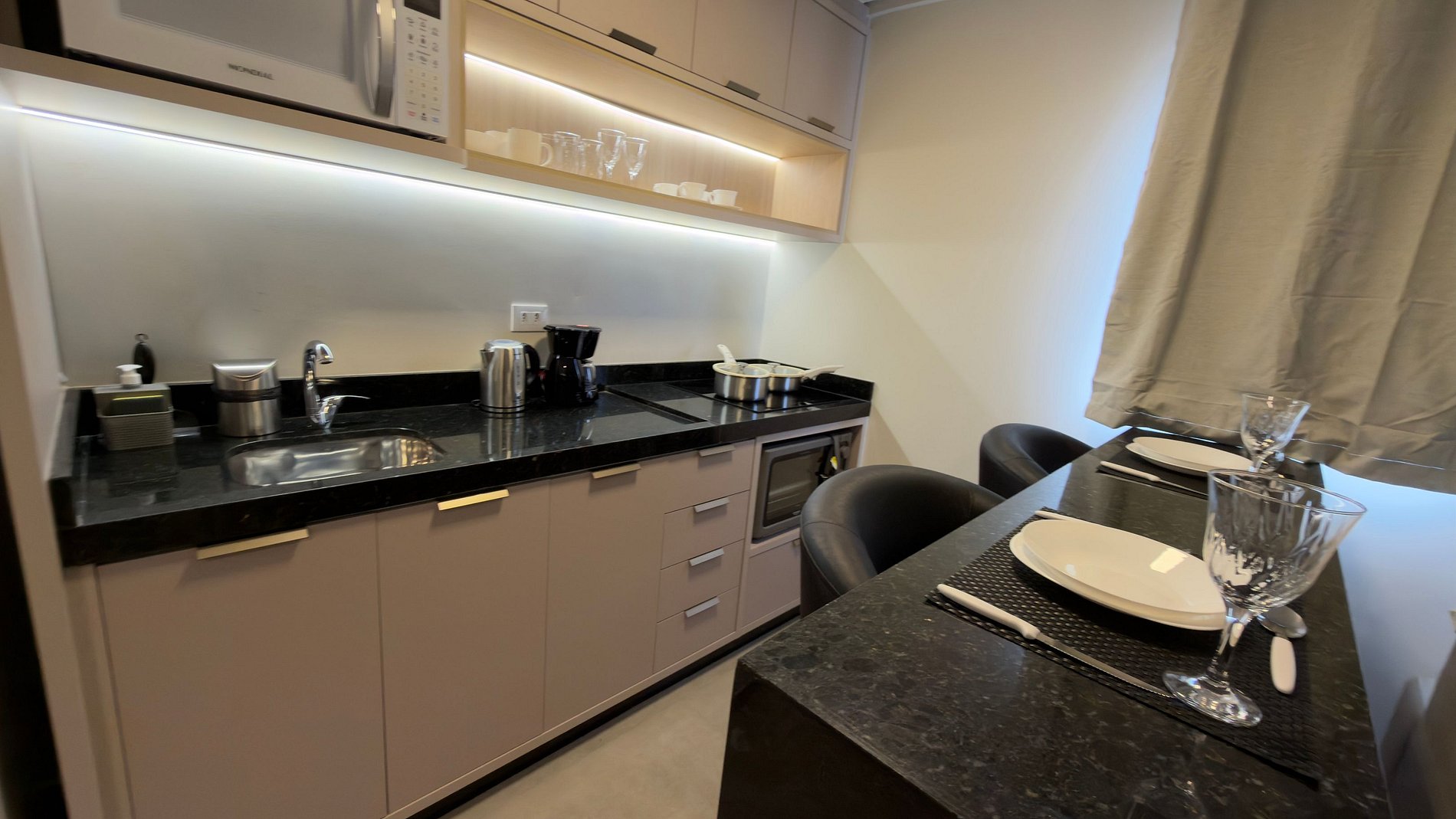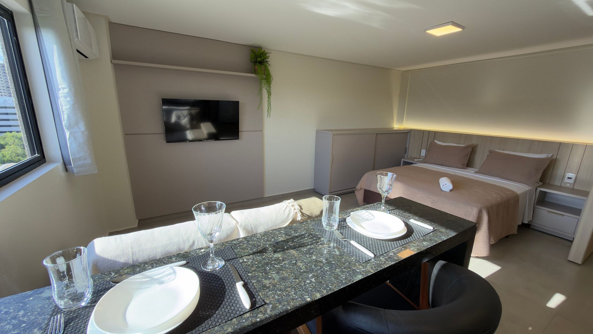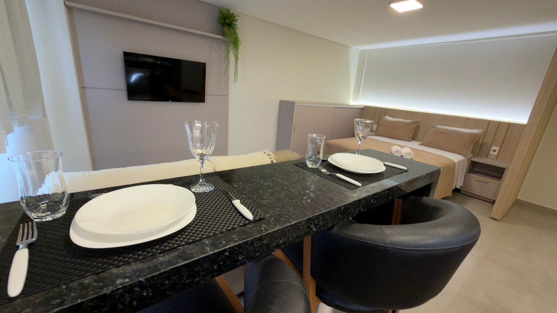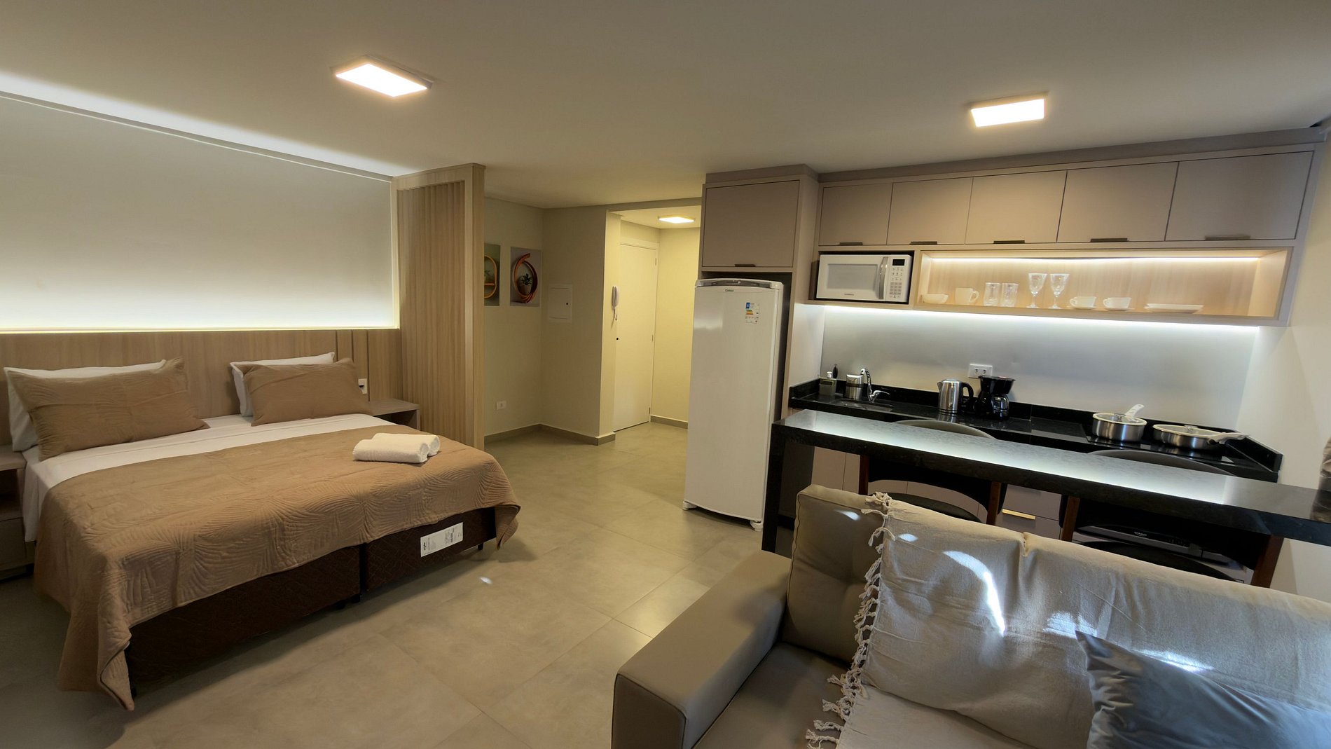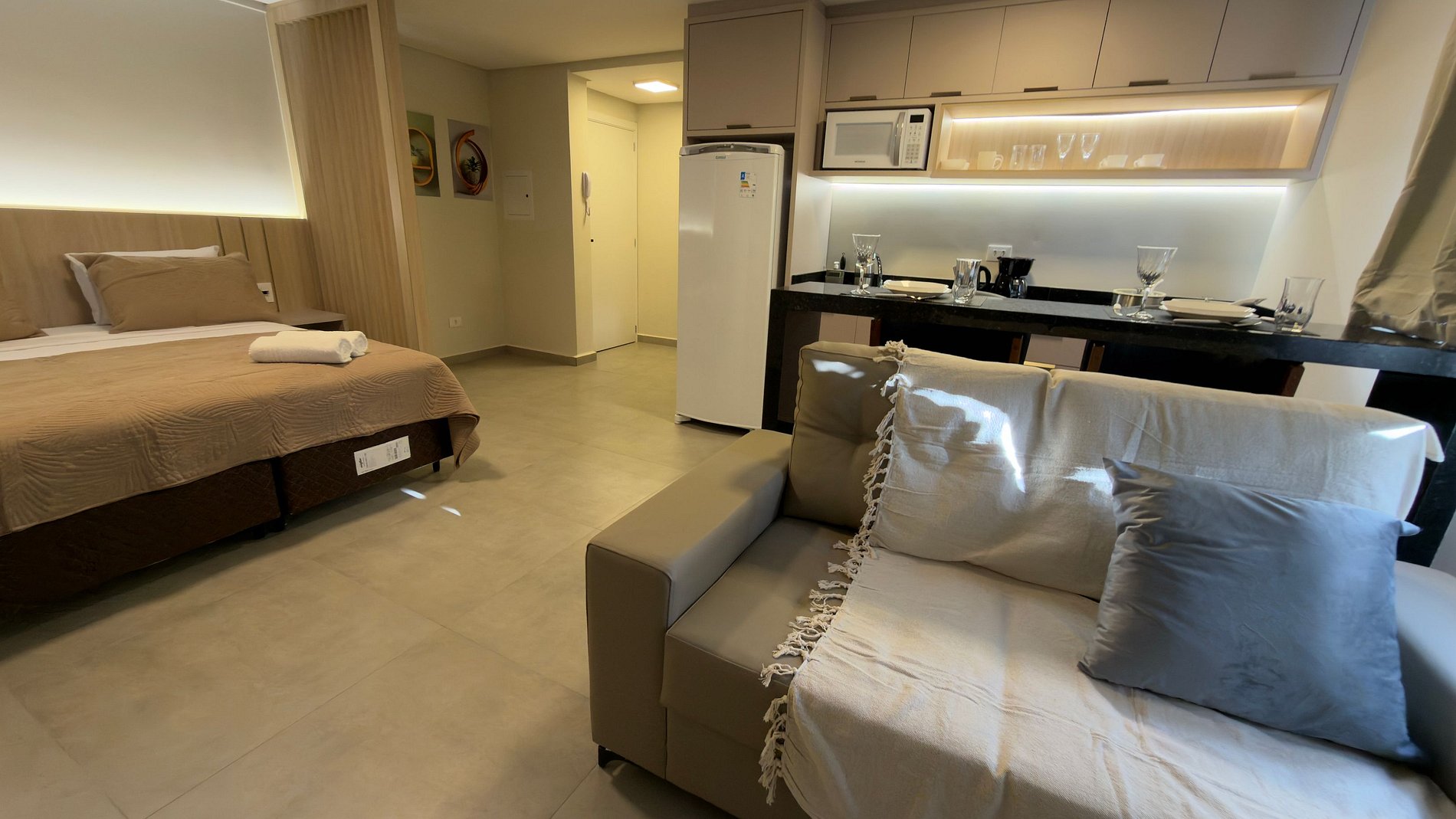Este estúdio moderno e bem planejado é ideal para quem busca conforto, praticidade e uma excelente localização em Foz do Iguaçu. O espaço é compacto, funcional e muito bem iluminado, com mobiliário contemporâneo e acabamento de qualidade, pensado tanto para estadias curtas quanto mais longas.