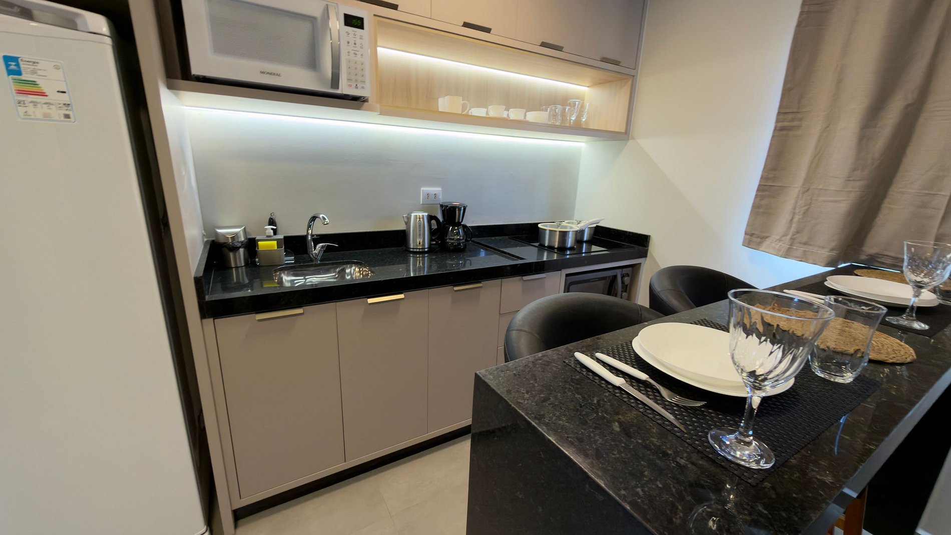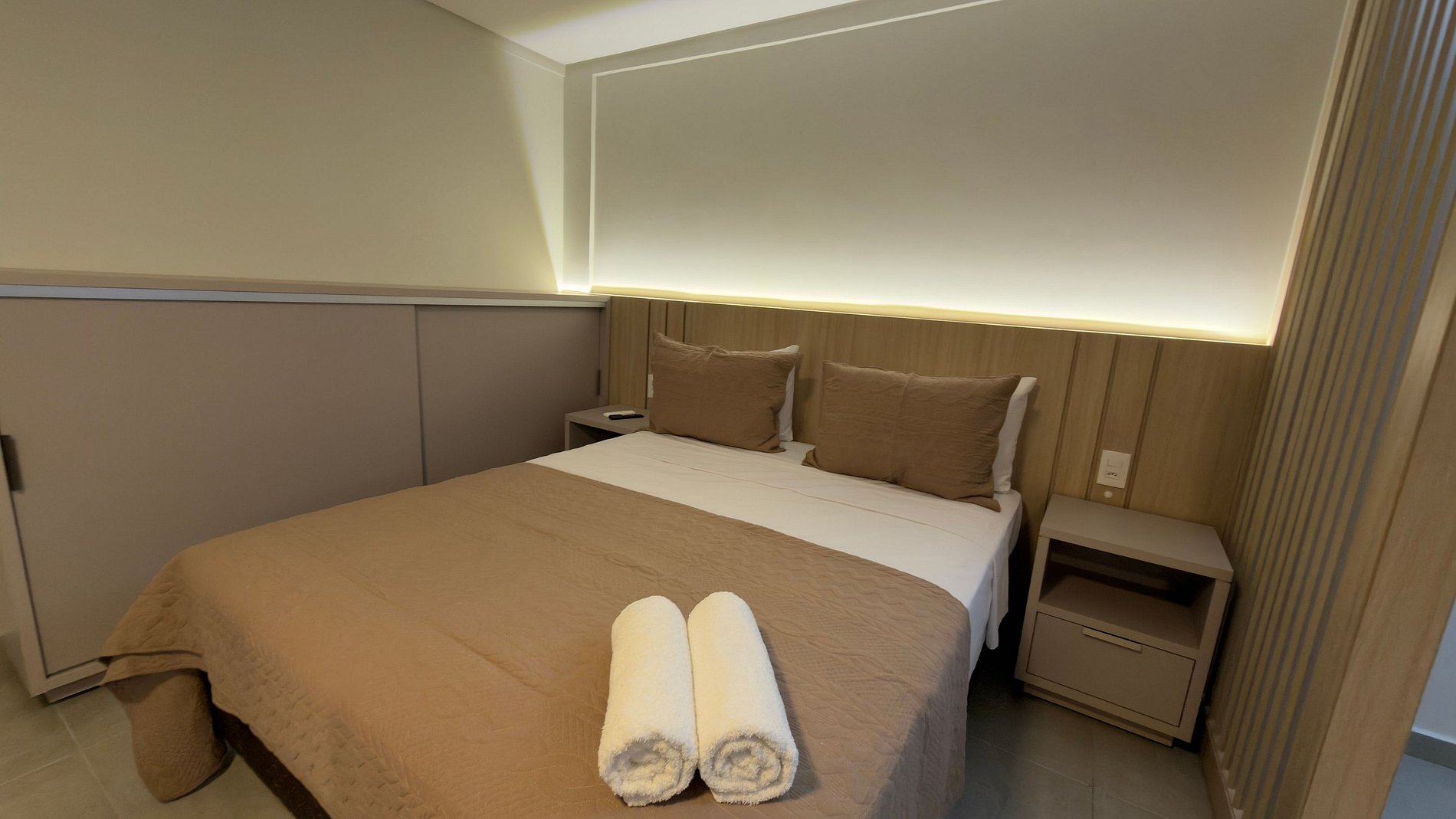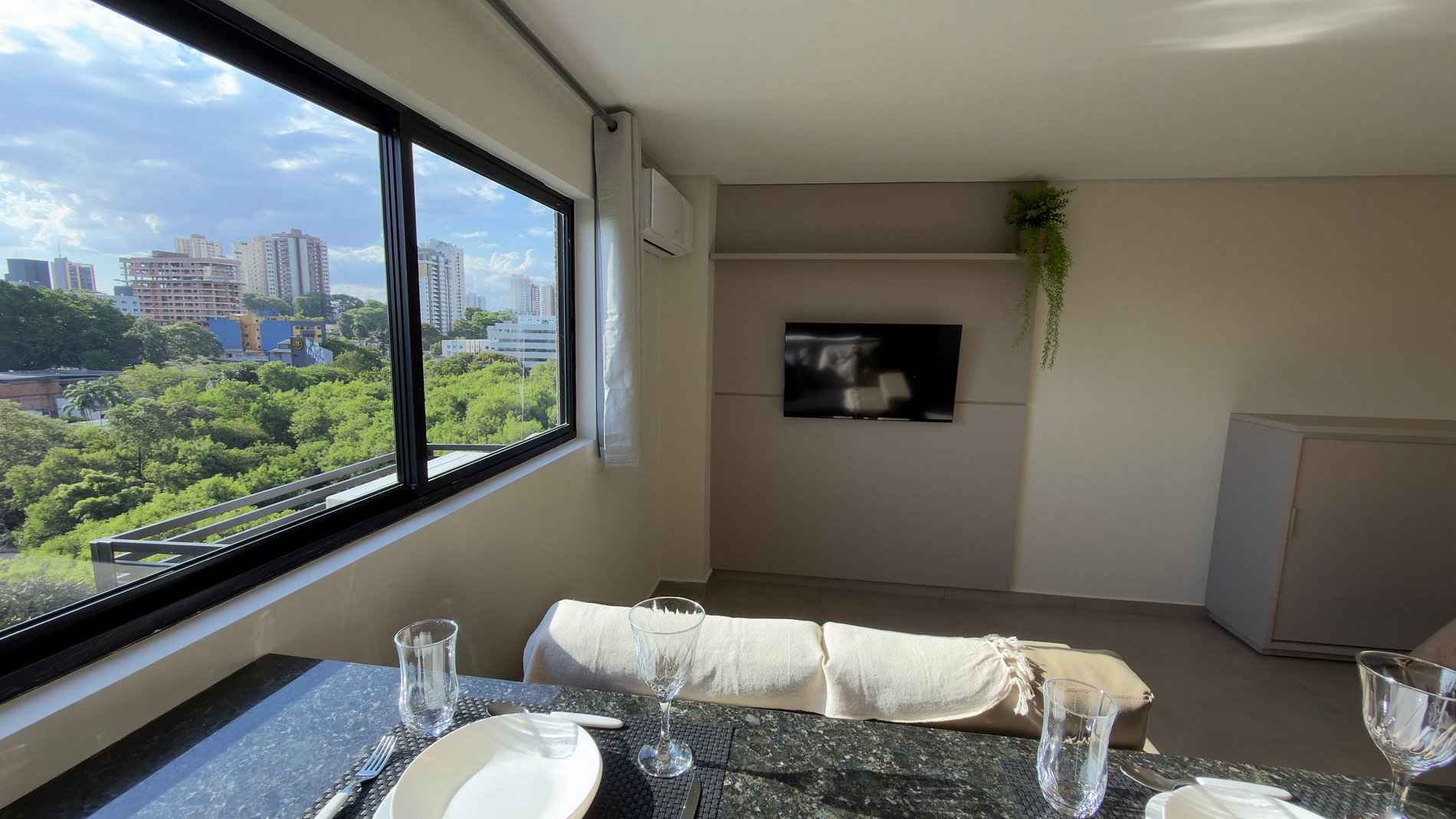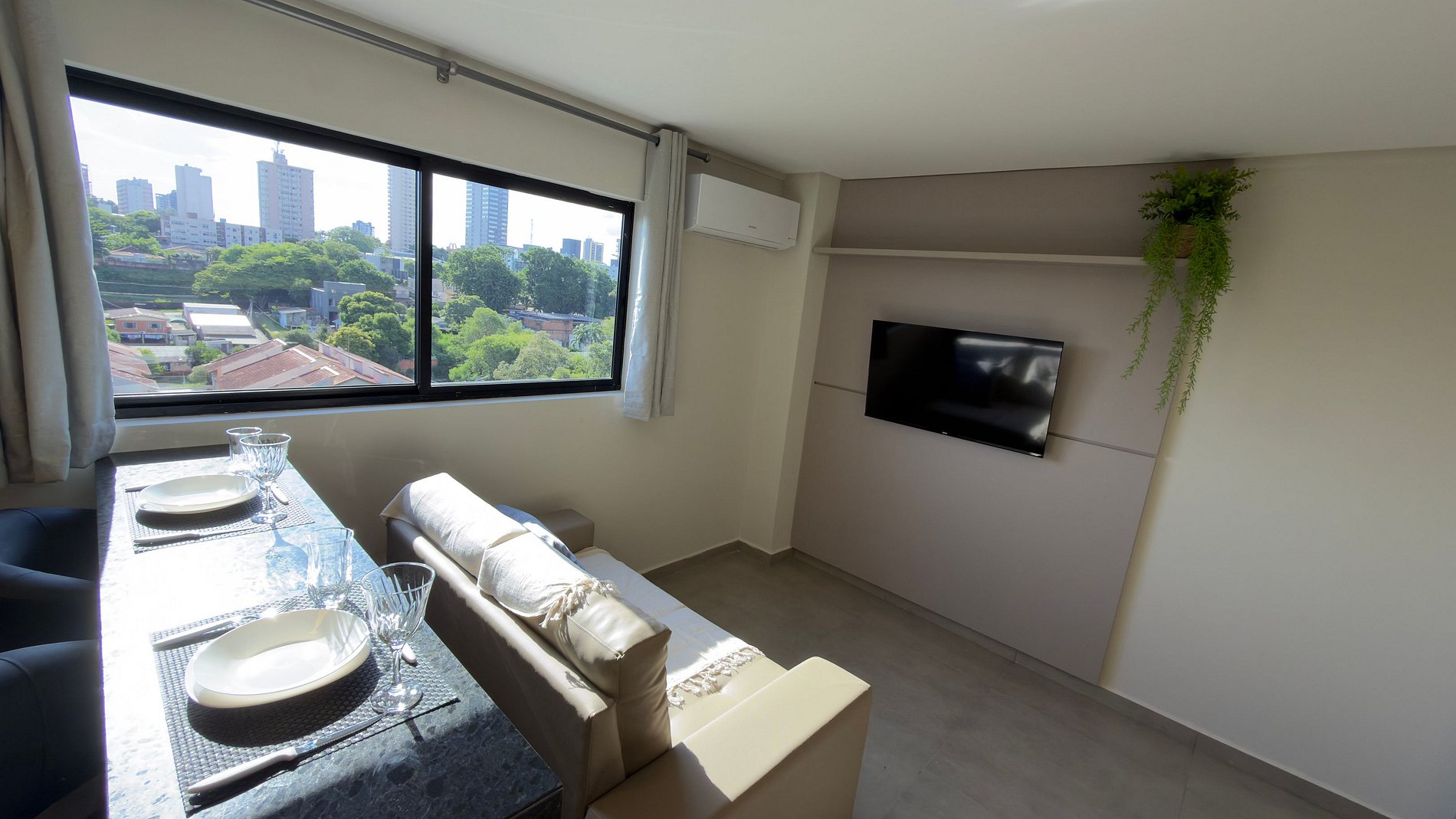 Este estúdio moderno e bem planejado é ideal para quem busca conforto, praticidade e uma excelente localização em Foz do Iguaçu. O espaço é compacto, funcional e muito bem iluminado, com mobiliário contemporâneo e acabamento de qualidade, pensado tanto para estadias curtas quanto mais longas.