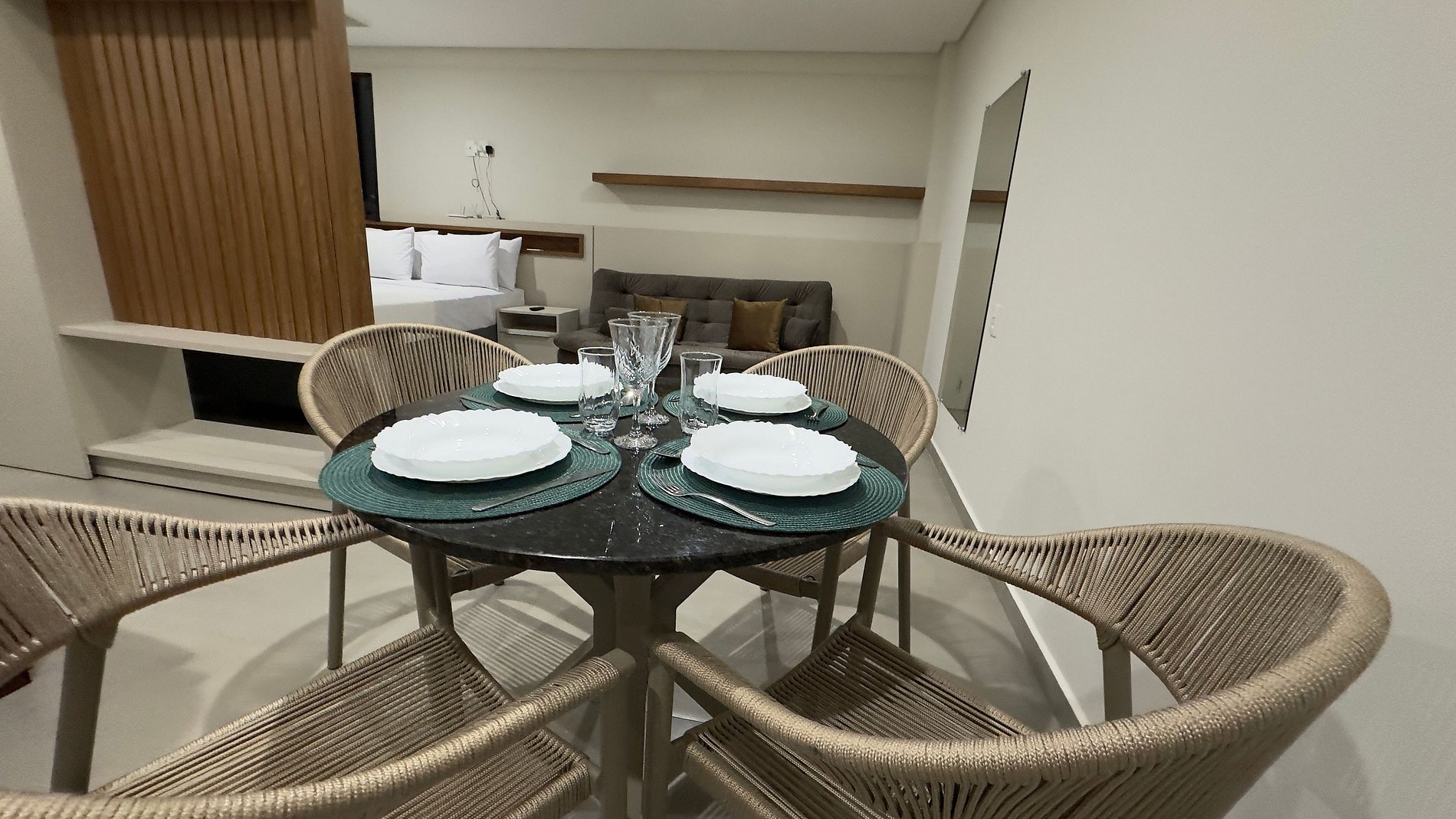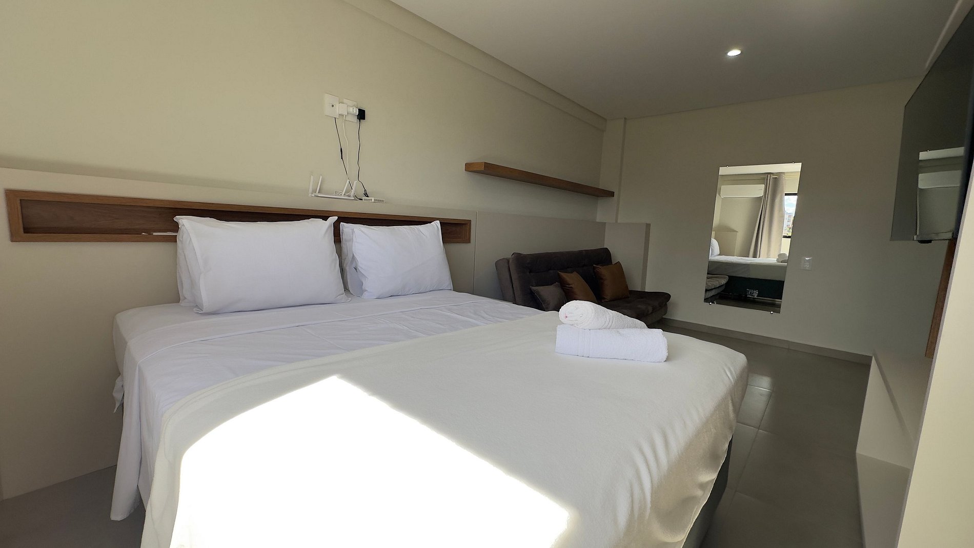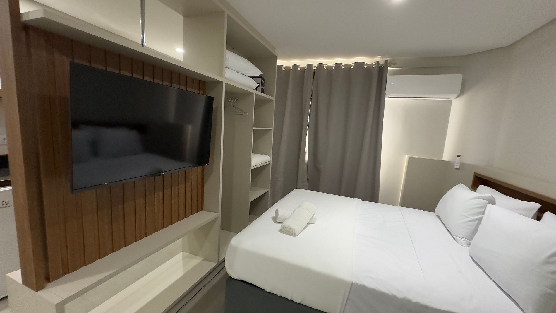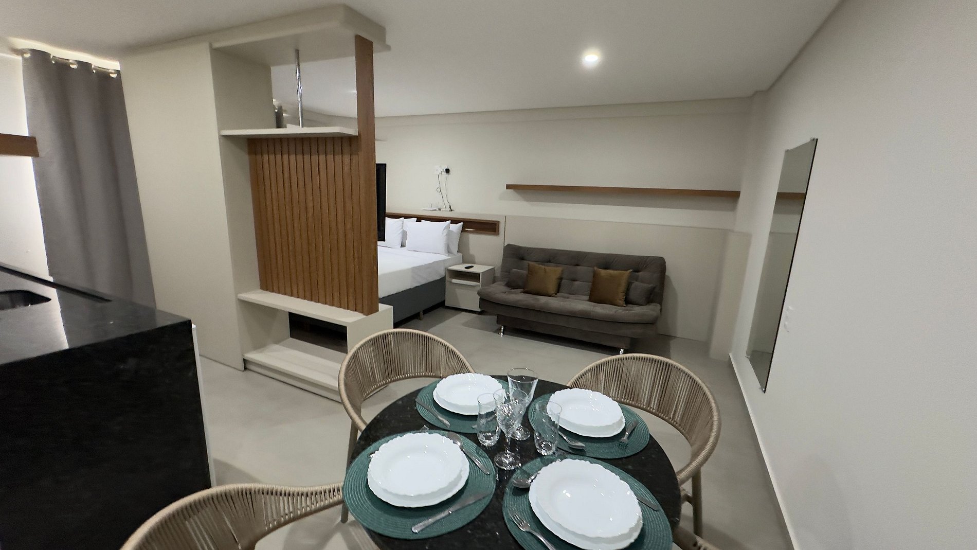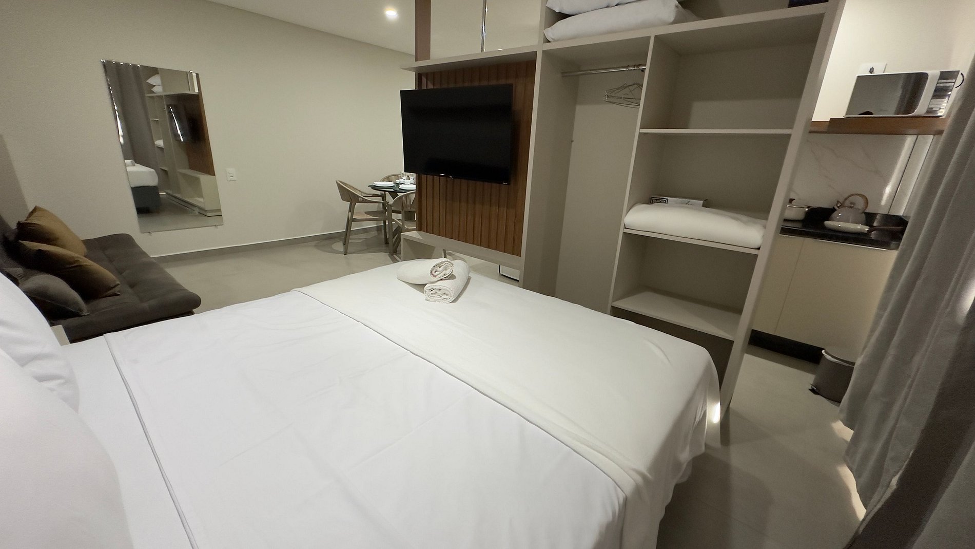 Este estúdio moderno e bem planejado é ideal para quem busca conforto, praticidade e uma excelente localização em Foz do Iguaçu. O espaço é compacto, funcional e muito bem iluminado, com mobiliário contemporâneo e acabamento de qualidade, pensado tanto para estadias curtas quanto mais longas.