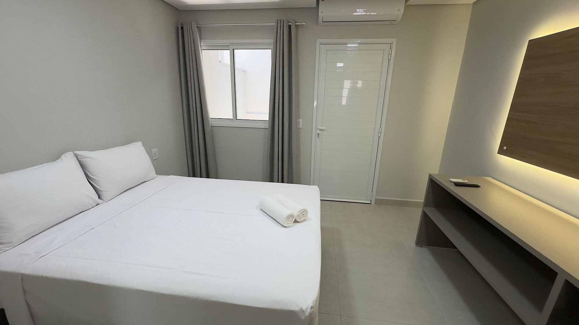 O apartamento térreo e compacto, mas extremamente funcional, com uma cama de casal padrão, cozinha equipada com utensílios do dia a dia, banheiro com ducha elétrica, banheiro com chuveiro elétrico, mesa para trabalhos, além de um ambiente moderno e bem decorado. O prédio é novo e conta com fechadura eletrônica, garantindo praticidade no acesso, além de entrada totalmente tecnológica e segura.
