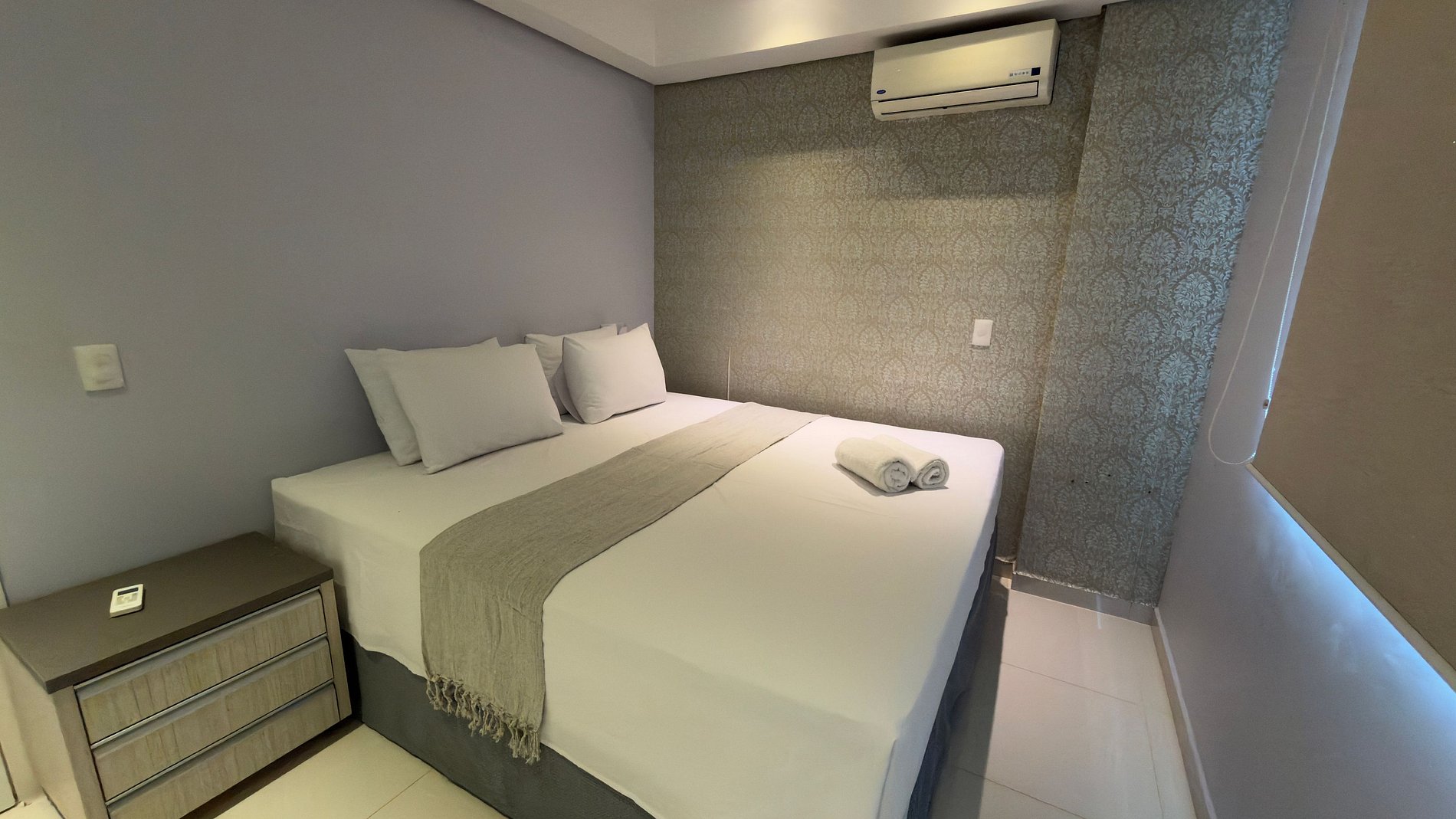 A localização central em Foz oferece acesso rápido e fácil aos principais pontos turísticos utilizando transporte público, entre outras opções. O espaço possui uma vaga de garagem para carro compacto, dois quartos com cama de casal (um com cama king), um quarto com armário e colchão de casal, sala com sofá confortável, banheiro com ducha elétrica, cozinha, wifi de alta velocidade, varanda com churrasqueira, ar-condicionado na sala e quartos, área de lavanderia com tanque e smart TV.