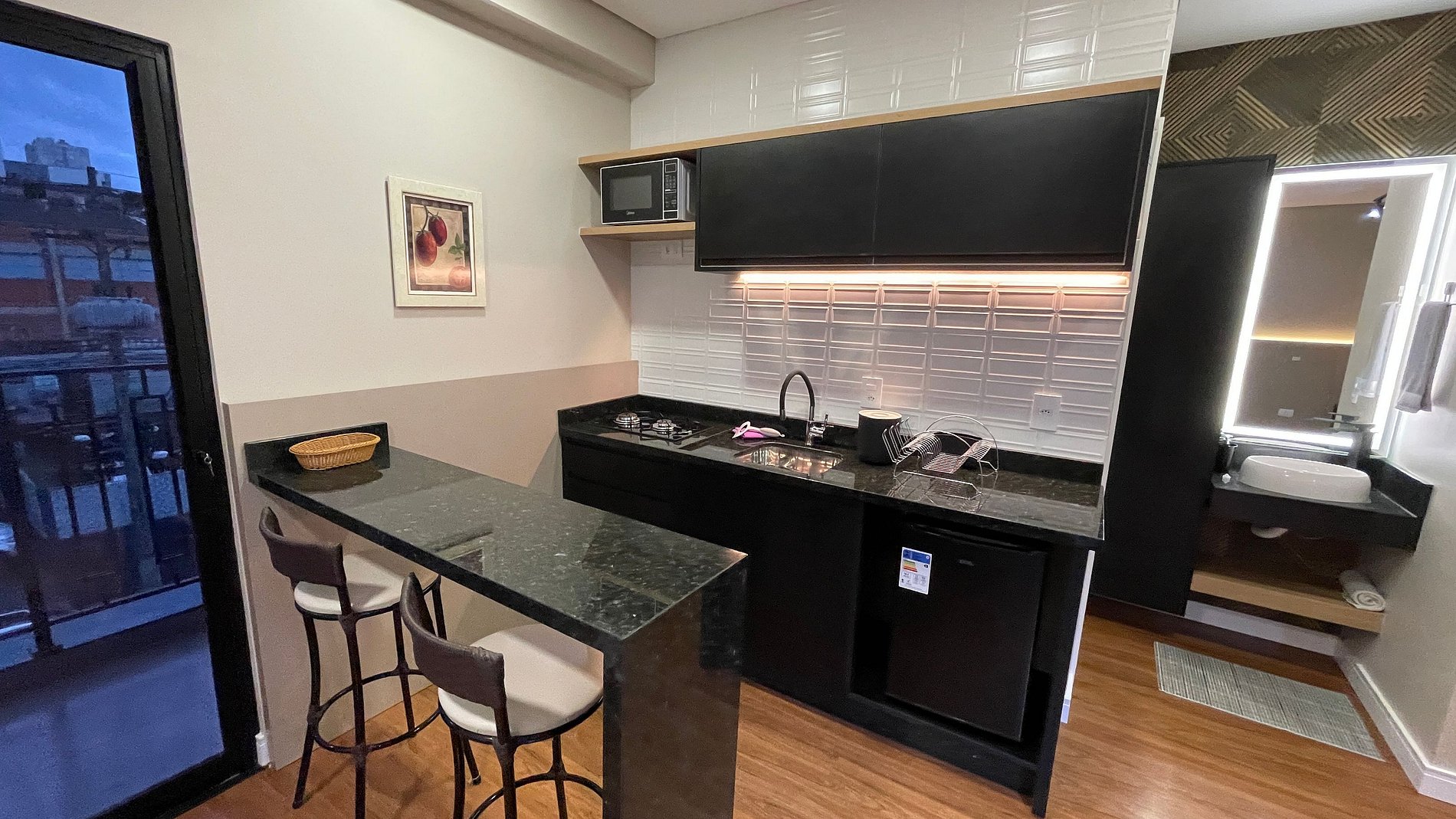 Seus apartamentos contam com cozinha equipada, Smart tv, cama confortável, ar-condicionado que refrigeram todo o espaço, central de trabalho/estudos, enxoval de cama e banho.