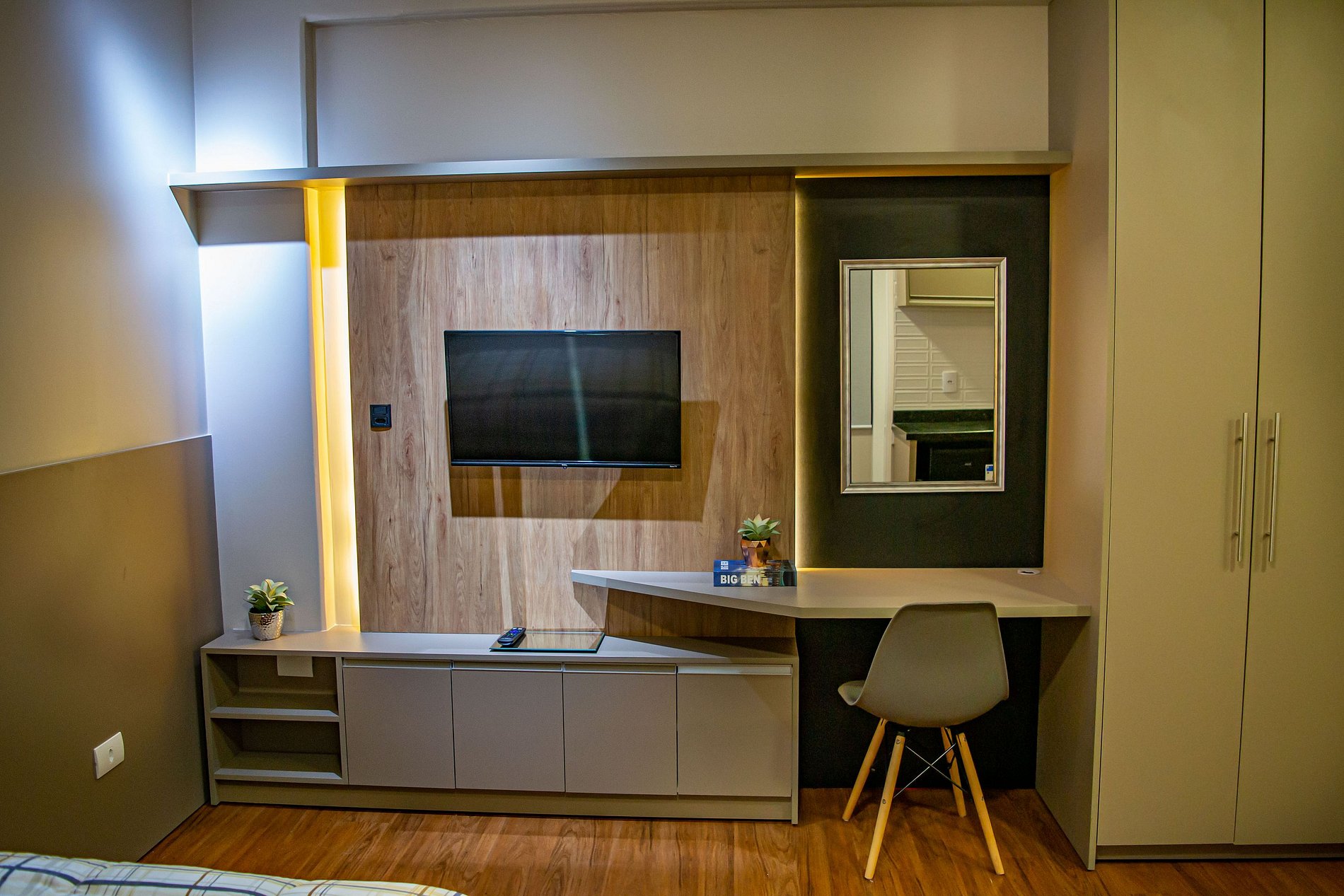 Seus apartamentos contam com cozinha equipada, Smart tv, cama confortável, ar-condicionado que refrigeram todo o espaço, central de trabalho/estudos, enxoval de cama e banho.