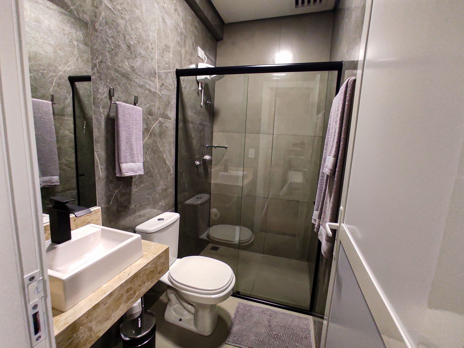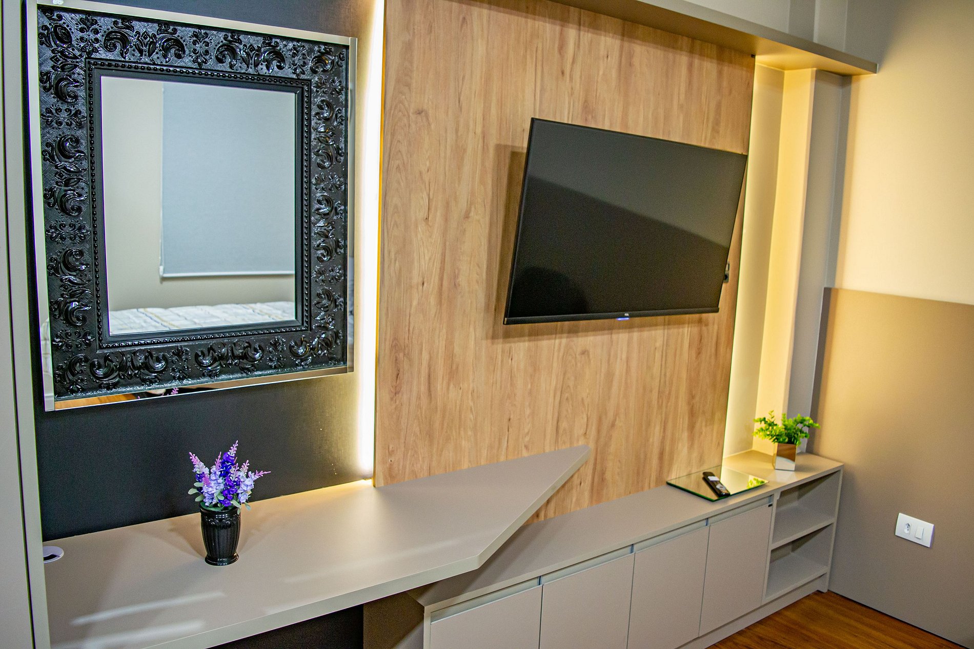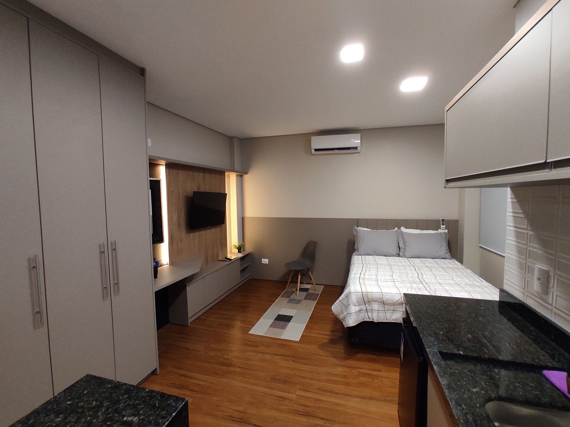 Seus apartamentos contam com cozinha equipada, Smart tv, cama confortável, ar-condicionado que refrigeram todo o espaço, central de trabalho/estudos, enxoval de cama e banho.