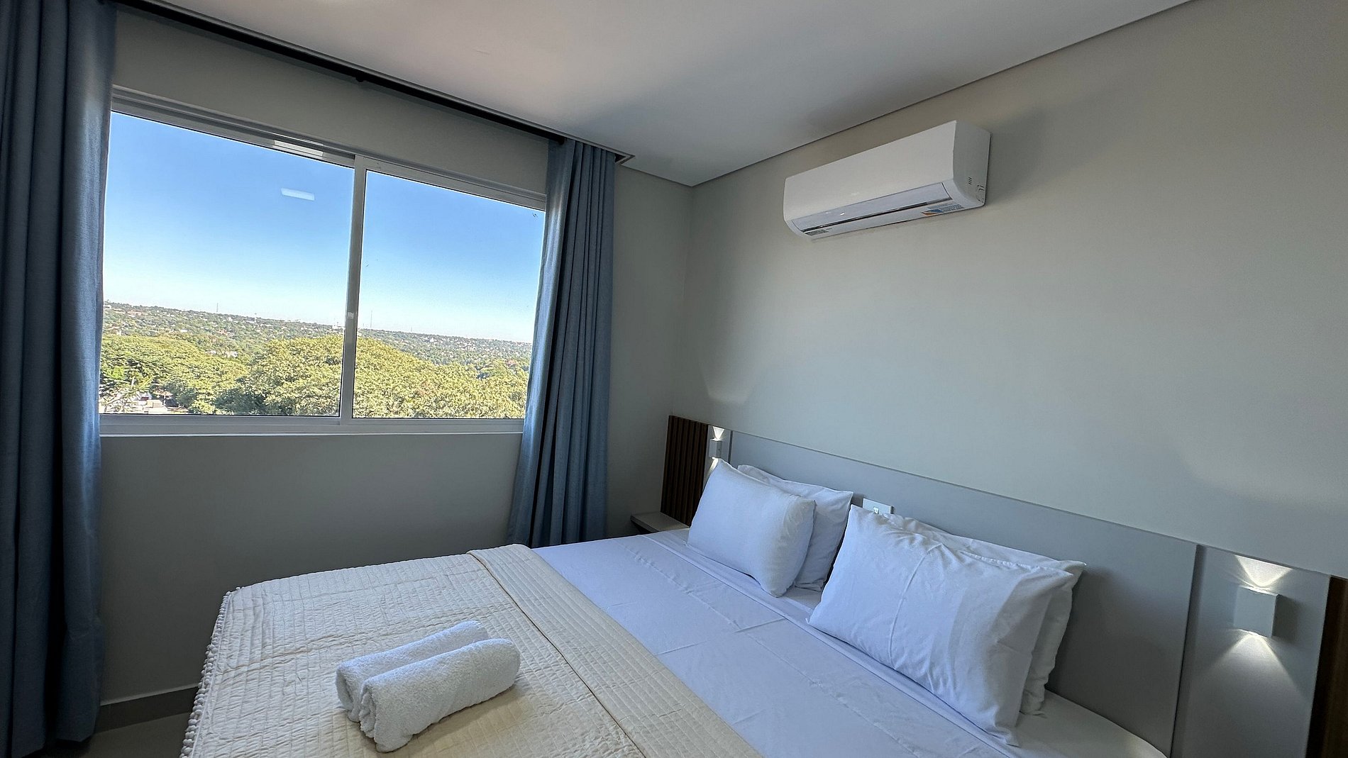 Apartamento novinho com ambientes separado por portas e ambientado com muito carinho dispondo de tudo que você precisa para uma hospedagem confortável. Situado a poucos passos da avenida General Meira, na região central de Foz do Iguaçu.