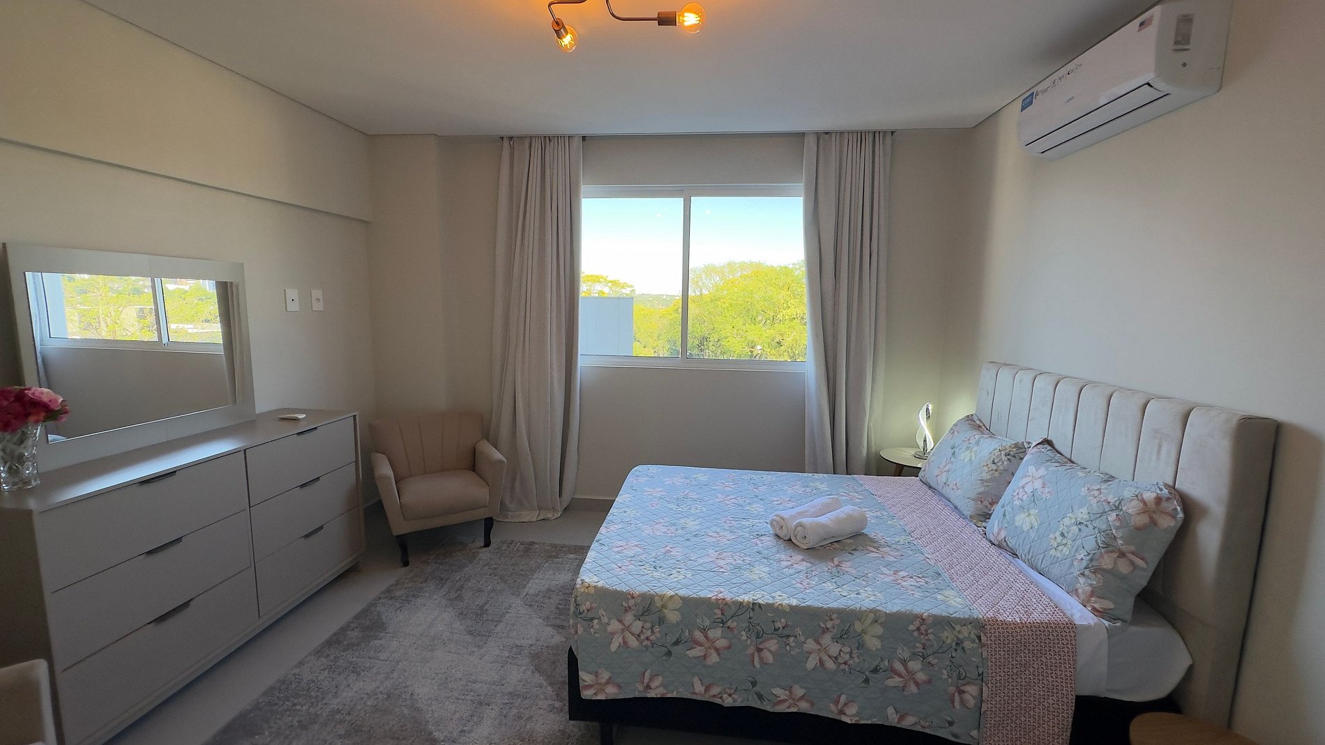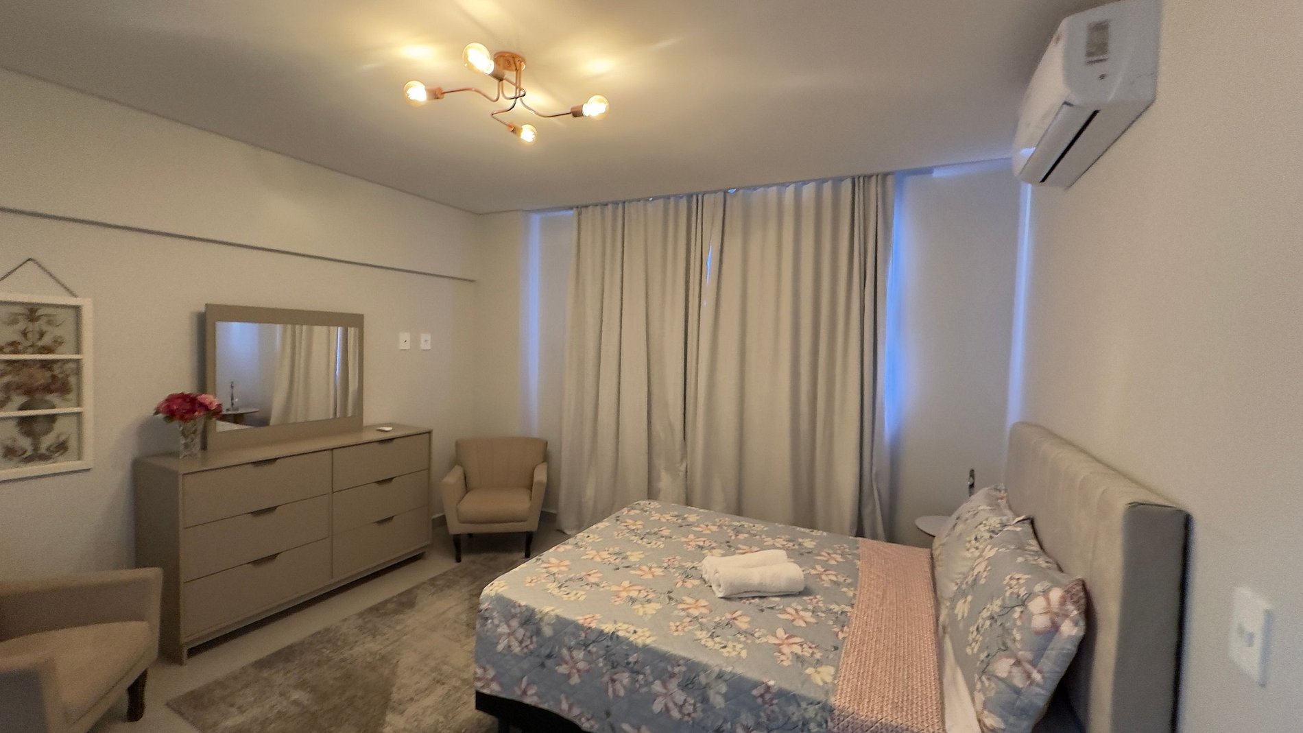 Apartamento novinho com ambientes separado por portas e ambientado com muito carinho dispondo de tudo que você precisa para uma hospedagem confortável. Situado a poucos passos da avenida General Meira, na região central de Foz do Iguaçu.