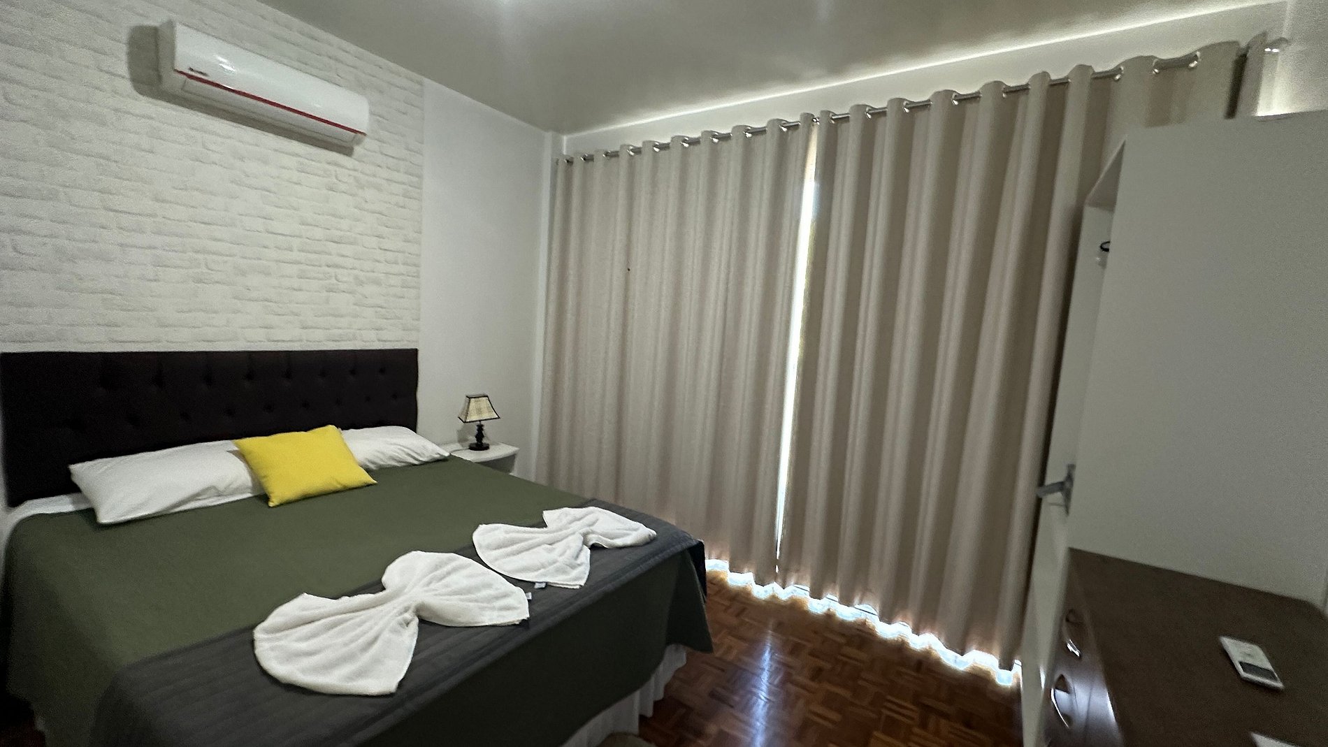 - 01 Quarto com cama de casal (comportando até dois adultos)