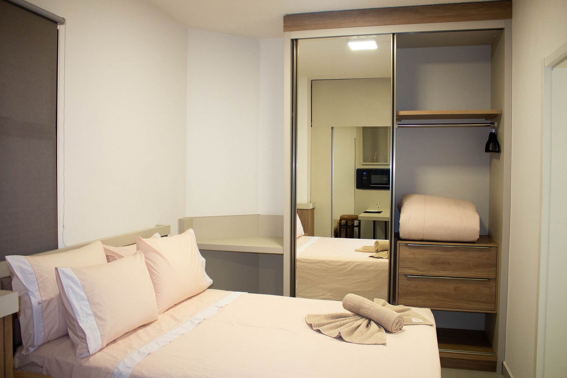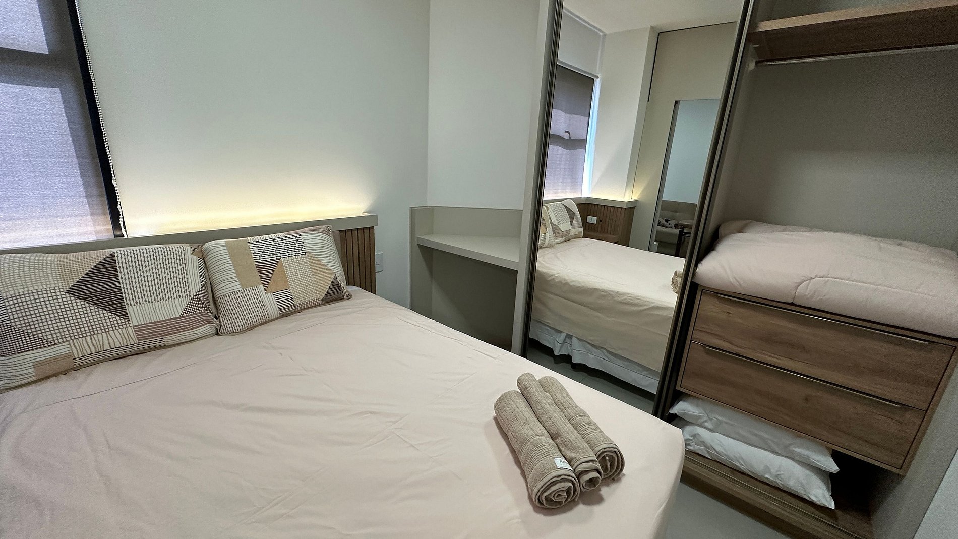Para quem vem a turismo também é uma ótima opção. O prédio fica próximo a Mesquita, de fácil acesso ao trajeto da Itaipu, templo Budista e rota para as Cataratas e outros pontos turísticos. O apartamento é equipado com cozinha completa, cama confortável casal, mesa para trabalhos e refeições, TV, ar-condicionado,Chuveiro elétrico, lavanderia com máquina de lavar e secar no prédio (cobrado cada ciclo com a opção Pay-for-use), jogo de cama e banho, Wi-fi e estacionamento incluso.