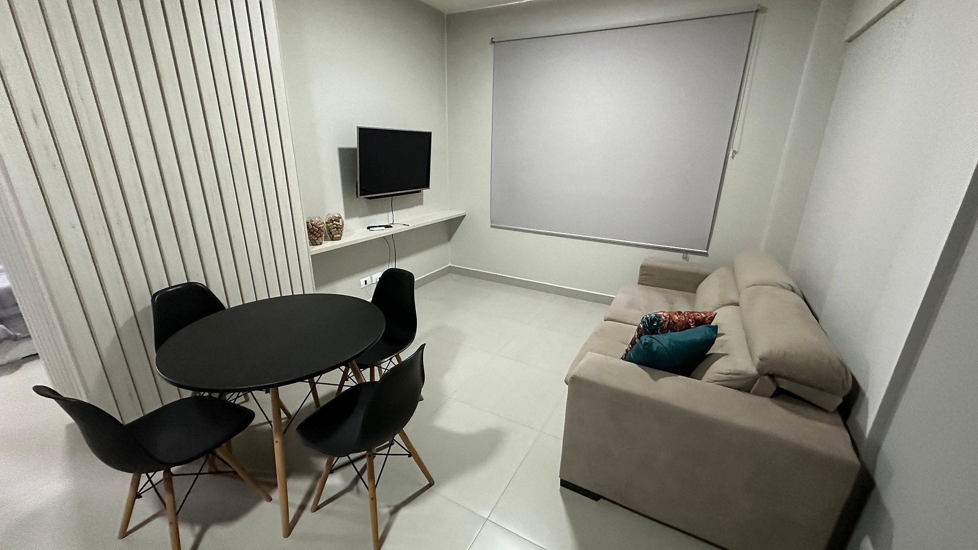 O apartamento contém uma cama de casal e um sofá cama na sala. Assim comportando 03 pessoas confortavelmente.