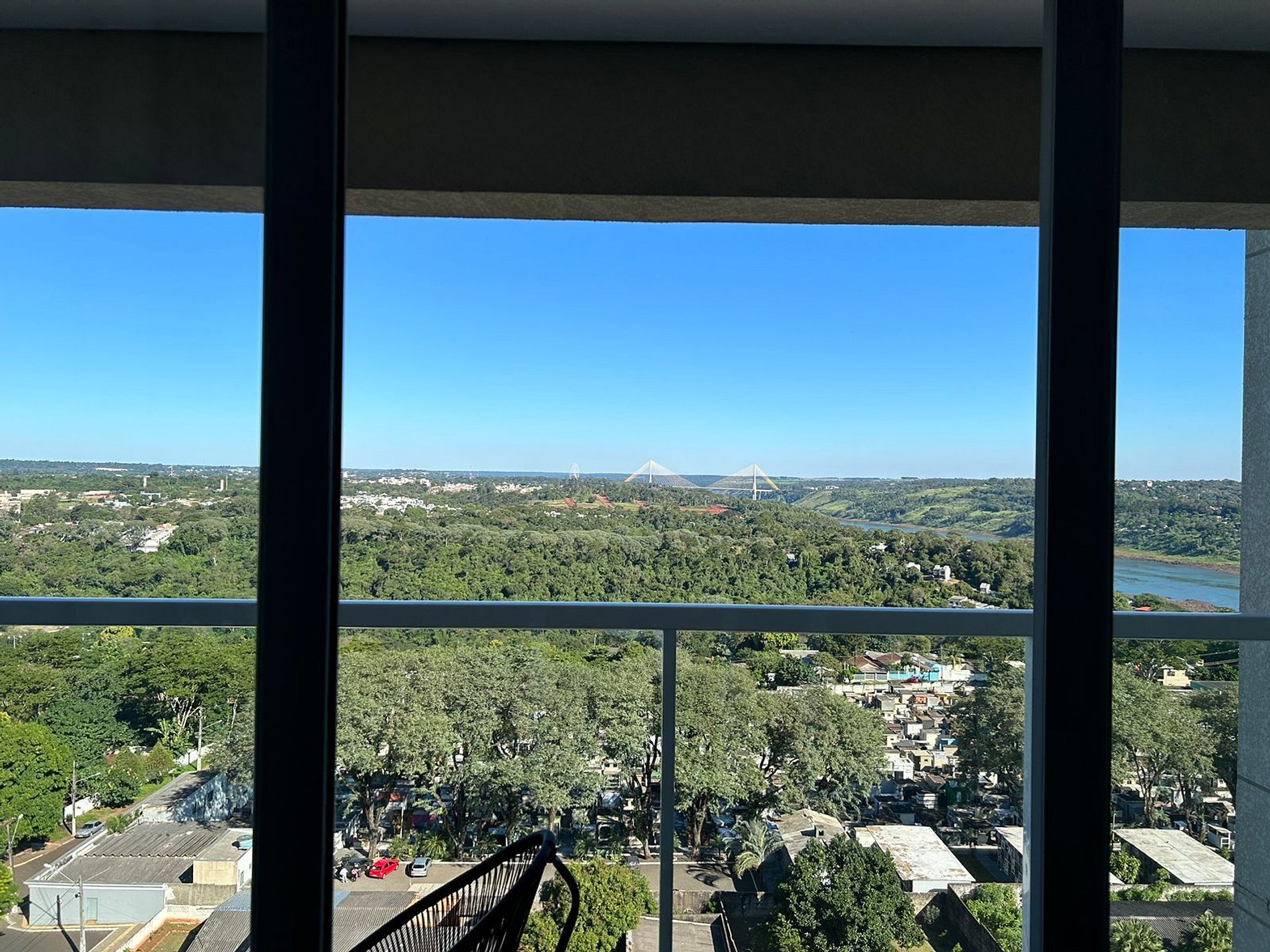 São 02 quartos climatizados (frio), sendo um deles uma suíte, 1 banheiro social, cozinha equipada com material para refeições do dia a dia, lavanderia com máquina de lavar e secar. Ambiente de estar e jantar que se integra com a área externa em um espaço repleto de elementos em perfeita harmonia para o seu relaxamento. Todo o imóvel foi pensado em permitir bons momentos em uma incrível vista da cidade e Paraguai. Varanda com churrasqueira e cadeiras para conversar, tomar um bom chimarrão ou um delicioso café da tarde. O imóvel é muito bem localizado, no centro da cidade e com fácil acesso às principais atrações de Foz do Iguaçu e ótima mobilidade no entorno. O imóvel é climatizado com ar-condicionado na sala, na suíte e no segundo quarto. A cozinha e lavanderia totalmente equipadas com tudo o que precisar e para que se sinta como se estivesse em sua própria casa.