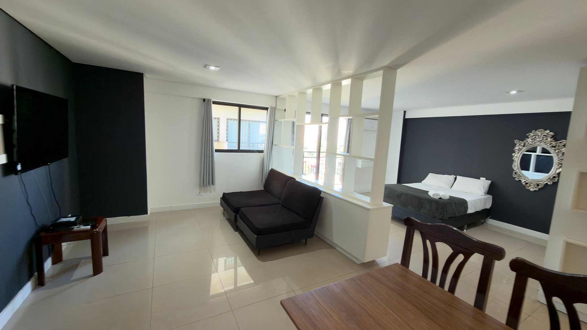 Apartamento moderno e ambientado com muito carinho dispondo de tudo que você precisa para uma hospedagem confortável. Situado a uma quadra da avenida Jorge Schimmelpfeng, no centro de Foz do Iguaçu, possibilitando acesso à pé aos mais famosos bares e restaurantes da cidade (Capitão Bar, Bona Trattoria, Rafain Chopp, Maki Sushi, Imperador dos Camarões, ...).