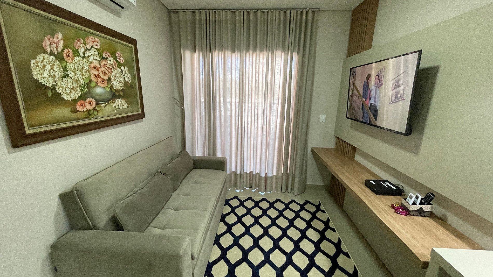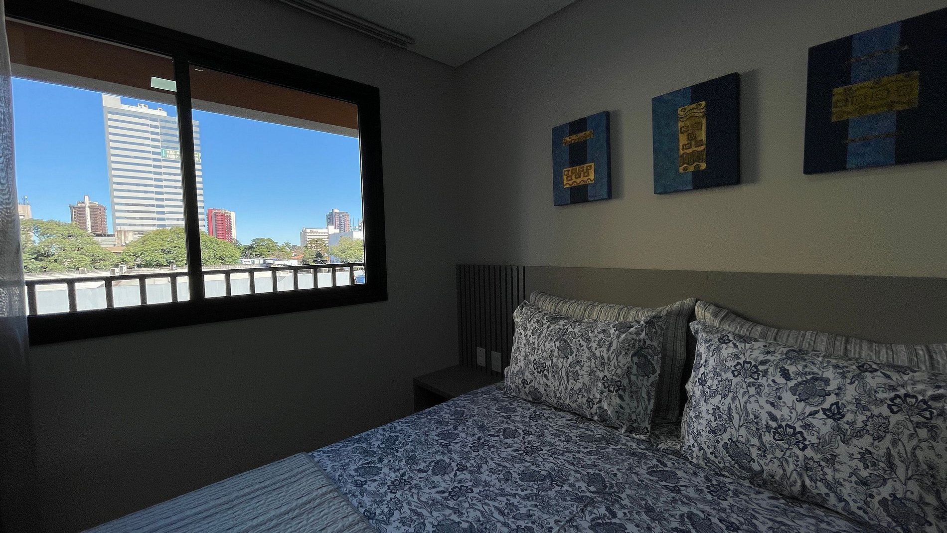 Ao lado da Caixa econômica e supermercado, sua localização possibilita acesso rápido e fácil aos principais pontos turísticos da cidade por meio de transporte público, dentre outros. O espaço conta com: - 01 vaga de garagem ; - 01 quarto com cama casal QUEEN e armários; - 01 sala com sofá cama CONFORTÁVEL para até 02 adultos; - 01 banheiro com ducha aquecida; - Cozinha completa; - Wi-fi Equipamentos: - Ar condicionado na sala e quarto; - Geladeira, fogão 4 bocas , micro-ondas, cafeteira, sanduicheira, chaleira, ferro - TV Smart; - Enxoval de cama e banho; - Enxoval de cozinha com taças de vinho, jogo de panelas, jogo de jantar e café completo, jogo de talheres e demais utensílios; Infraestrutura do condomínio: ; -Portaria com acesso por botton eletrônico; O atendimento aos hóspedes será sempre que necessário e solicitado. Check-in flexível a partir das 15h e Checkout até às 10h. O apartamento está a poucos metros da avenida Jorge Schimmelpfeng, conhecida como Avenida Gastronômica e que também dá acesso às principais avenidas da cidade. Nela, estão diversas opções gastronômicas tais como: choperias, petiscarias, comida japonesa, steak house, frutos do mar, massas etc. E um pouco mais distante, a cerca de 1,2 km, temos o Zeppelin Old Bar, que combina boa música e boa comida, e quase em frente, para quem curte chopp artesanal, tem o Eden Steak Garden e Chopperia. Acesso ao transporte público a uma quadra, inclusive para a Argentina e Paraguai.