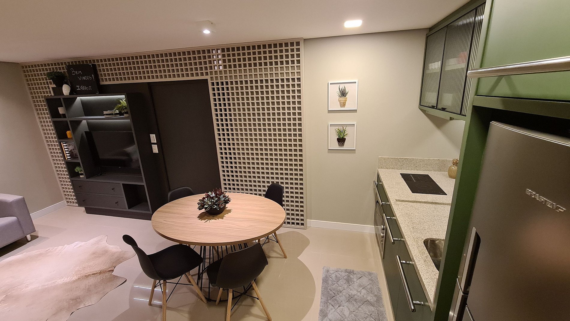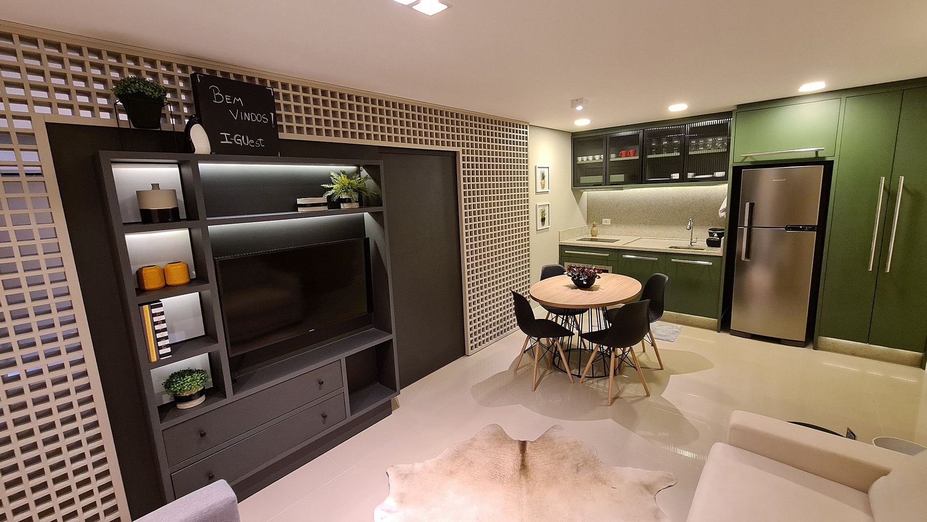 Apto Studio com decoração aconchegante e moderna, equipado com tudo o que você precisa para ficar confortável durante sua hospedagem. A uma quadra da avenida Jorge Schimmelpfeng, no centro de Foz do Iguaçu. Próximo a bares, restaurantes, farmácias e com uma padaria ao lado.