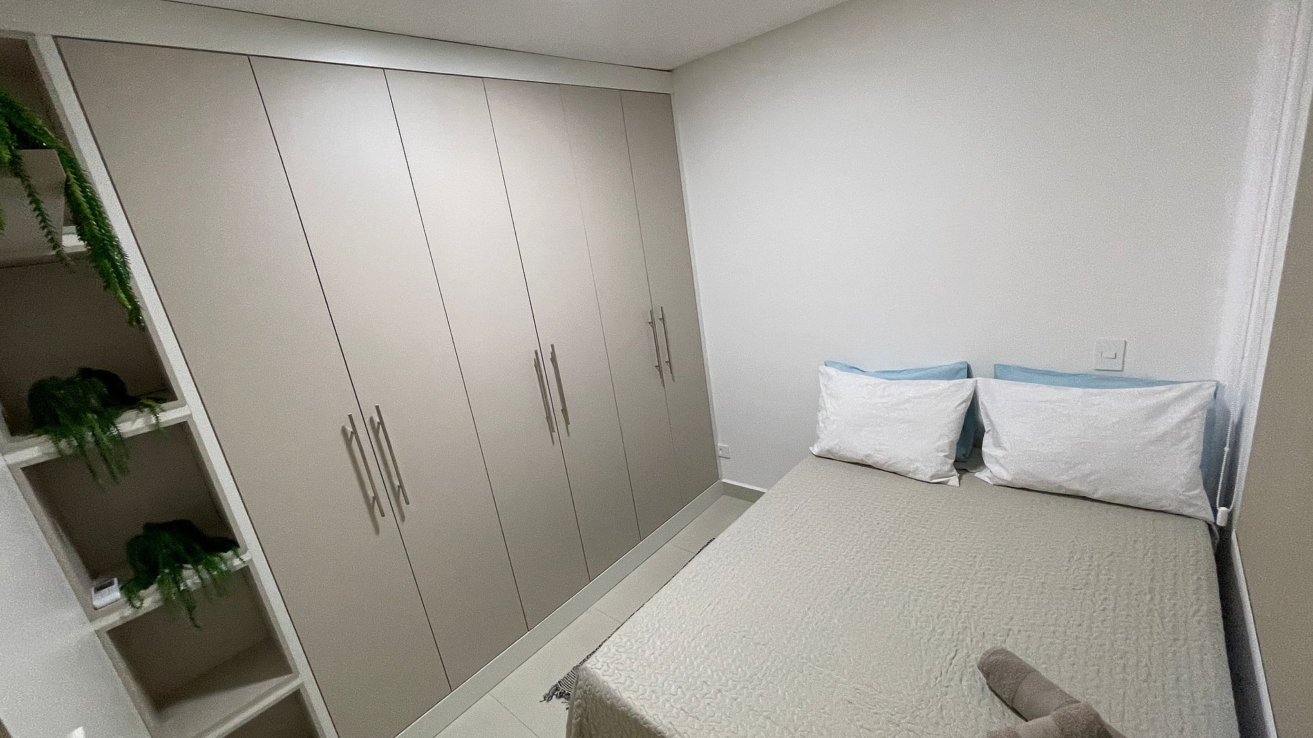 O imóvel conta com cama de casal, uma de solteiro e um sofá cama na sala. Ambos os ambientes climatizados e com o maior conforto para nossos hospedes. Ele conta com uma máquina lava e seca, Smart tv, wifi de alta velocidade, forno e fogão, microondas, cozinha equipada e garagem dentro do prédio e segurança. Oferecemos roupa de cama e banho para cada ocupante da reserva.