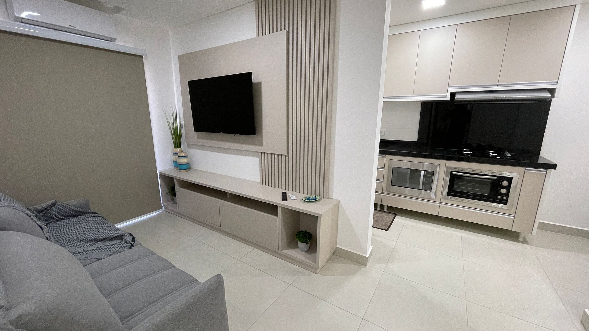 O imóvel conta com cama de casal, uma de solteiro e um sofá cama na sala. Ambos os ambientes climatizados e com o maior conforto para nossos hospedes. Ele conta com uma máquina lava e seca, Smart tv, wifi de alta velocidade, forno e fogão, microondas, cozinha equipada e garagem dentro do prédio e segurança. Oferecemos roupa de cama e banho para cada ocupante da reserva.