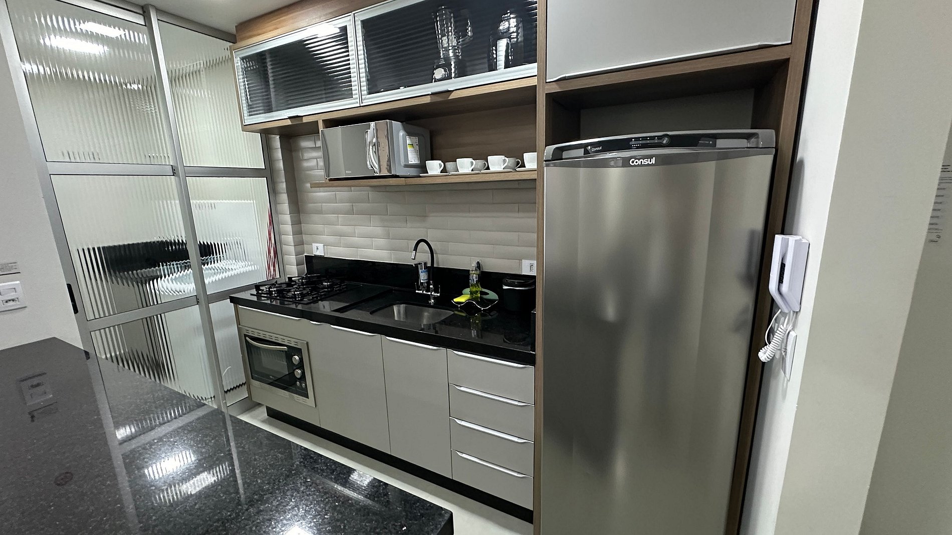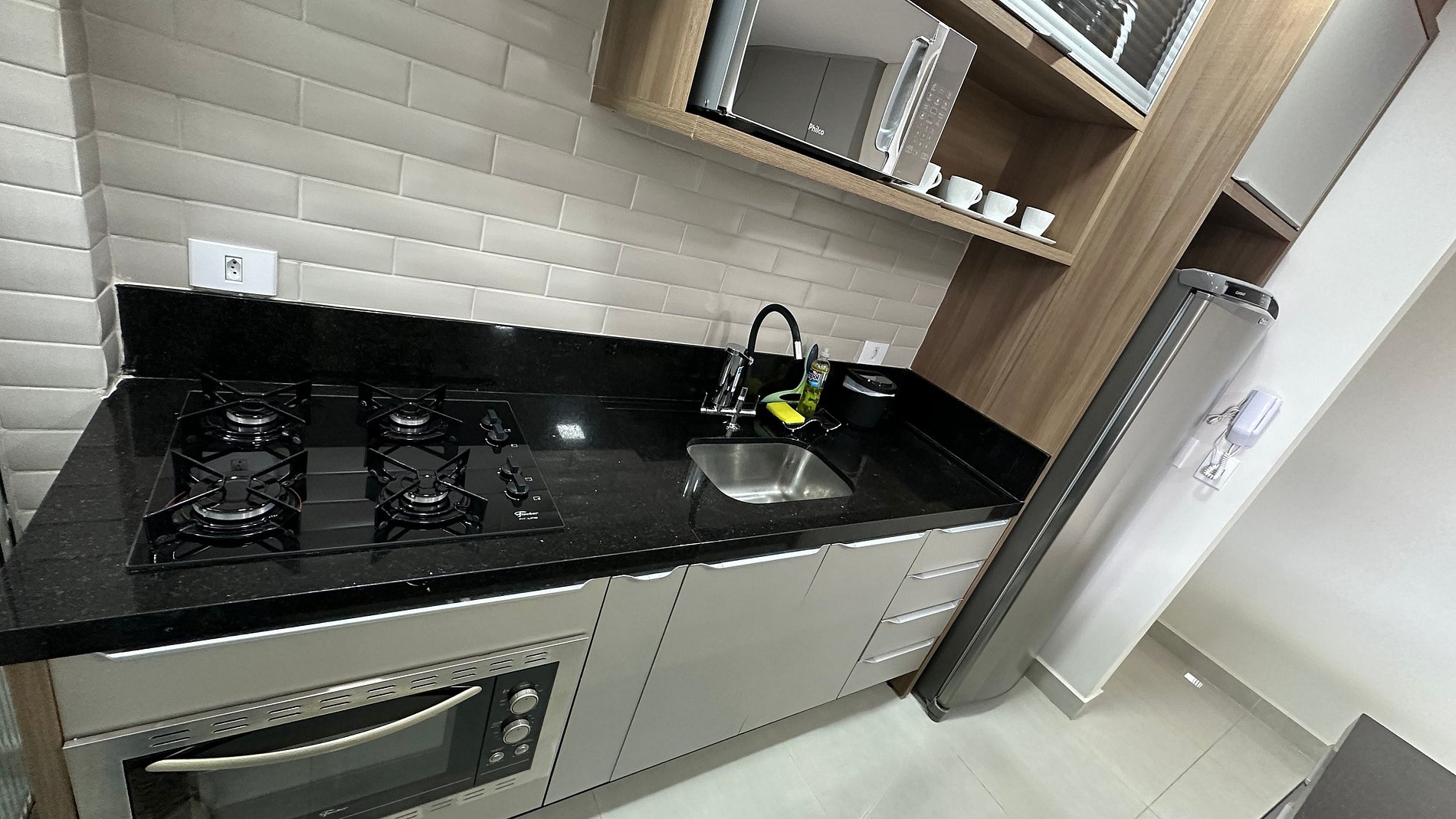 Cozinha equipada para refeições do dia-a-dia. Microondas, fogão, panelas e os principais utensílios domésticos para a sua estadia.