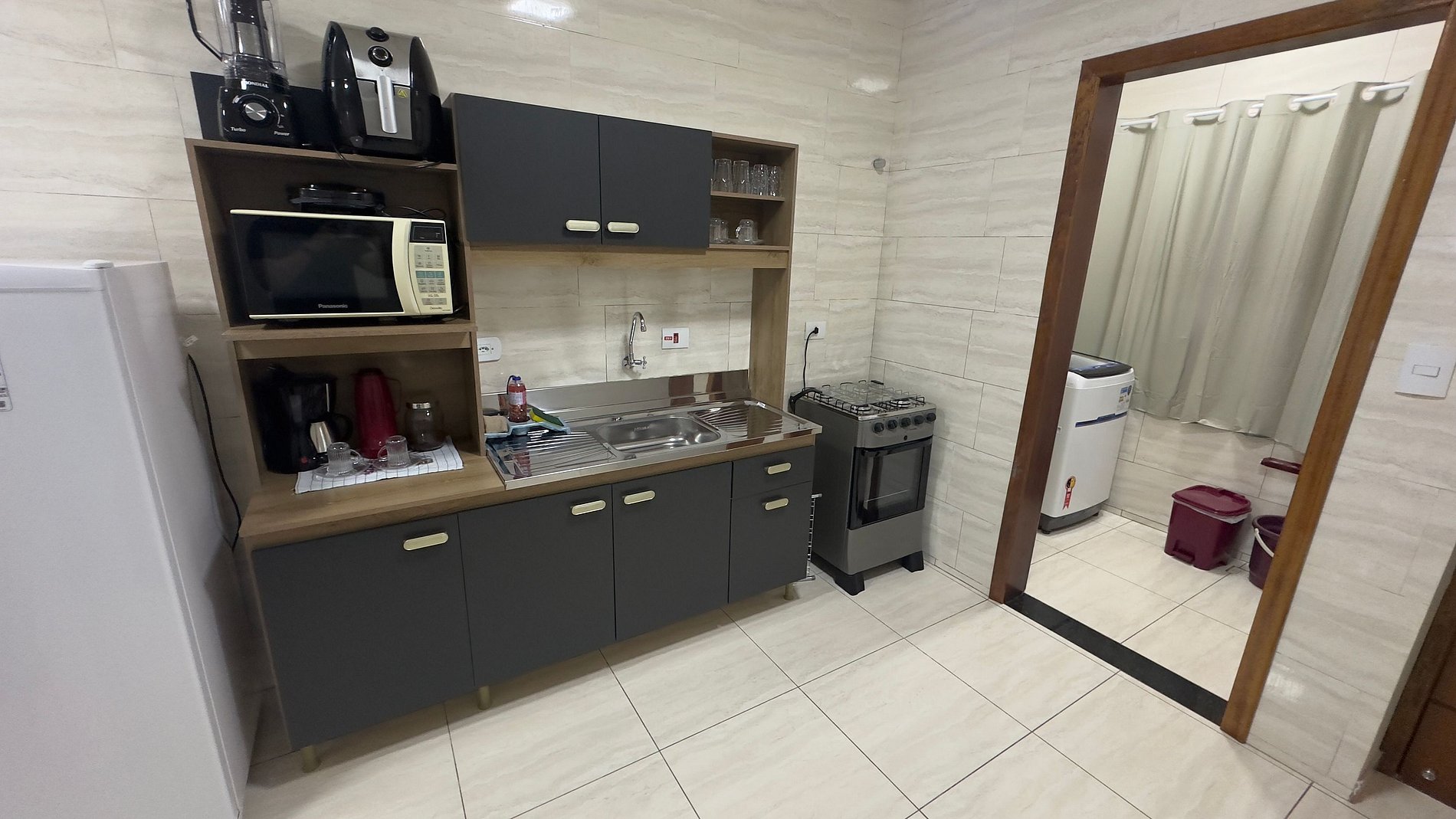 O imóvel não contém máquina de café e sim utensílios para fazer café. Assim também como itens básicos como utensílios e não itens perecíveis como óleo, sol, pimenta e etc.