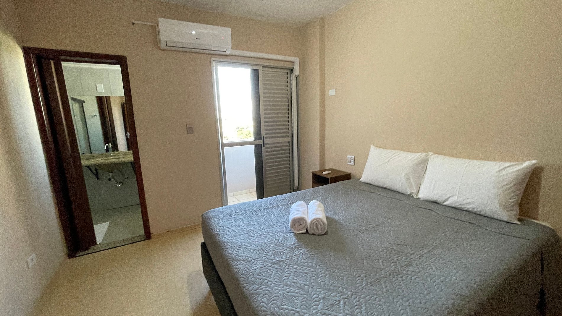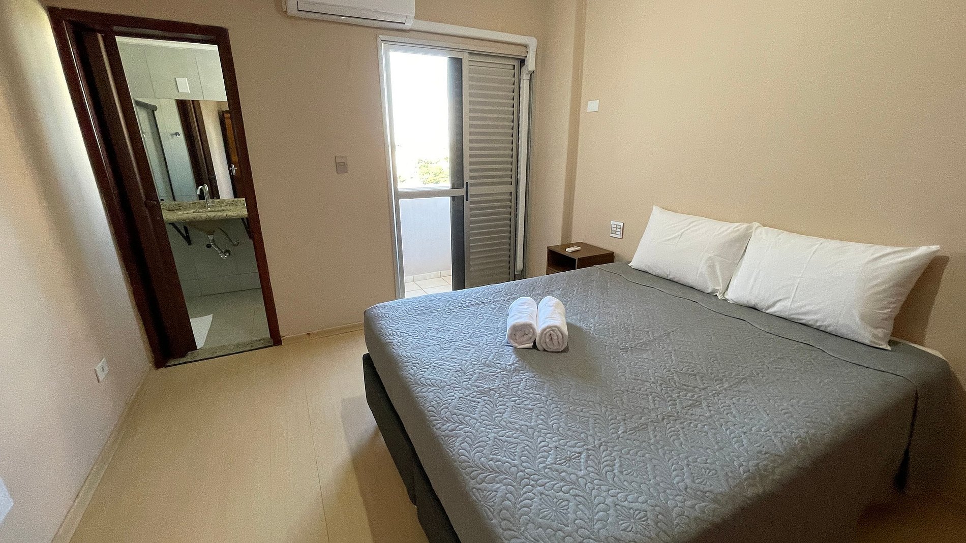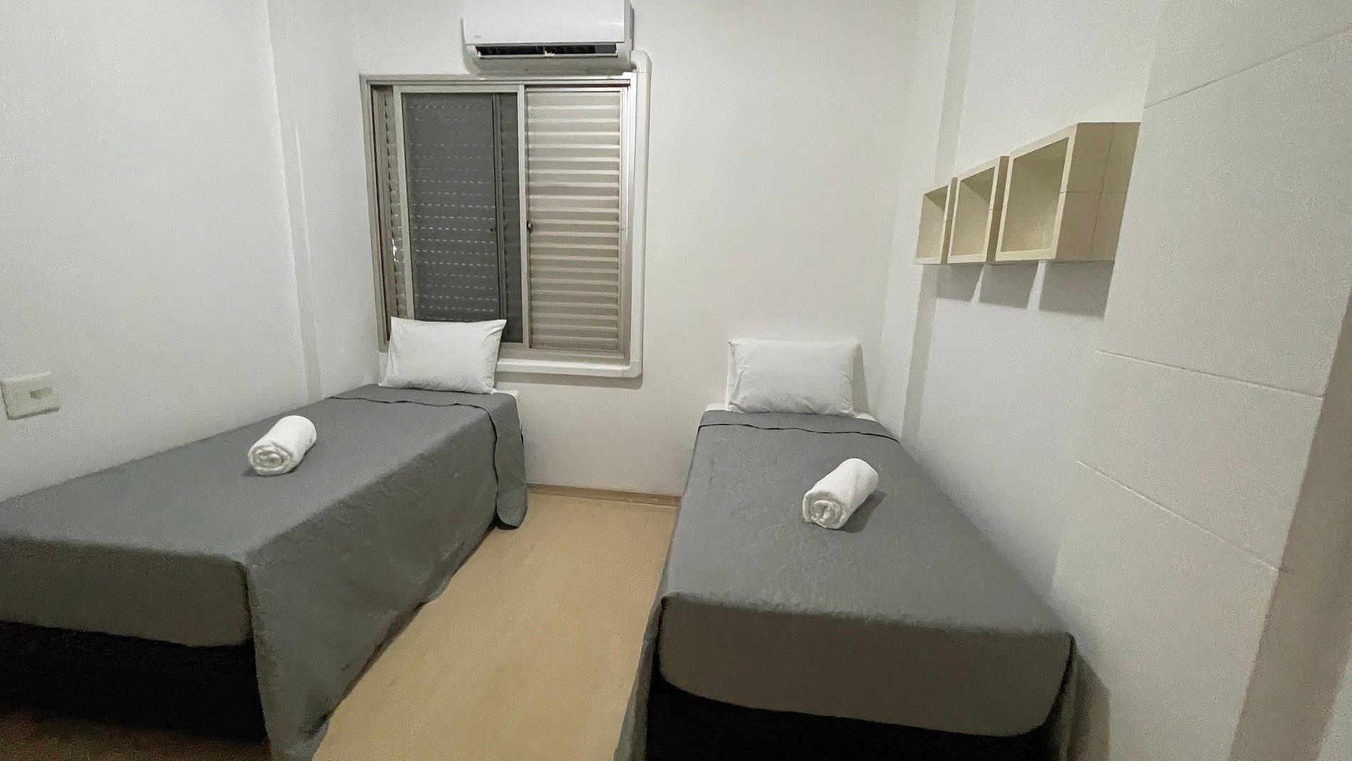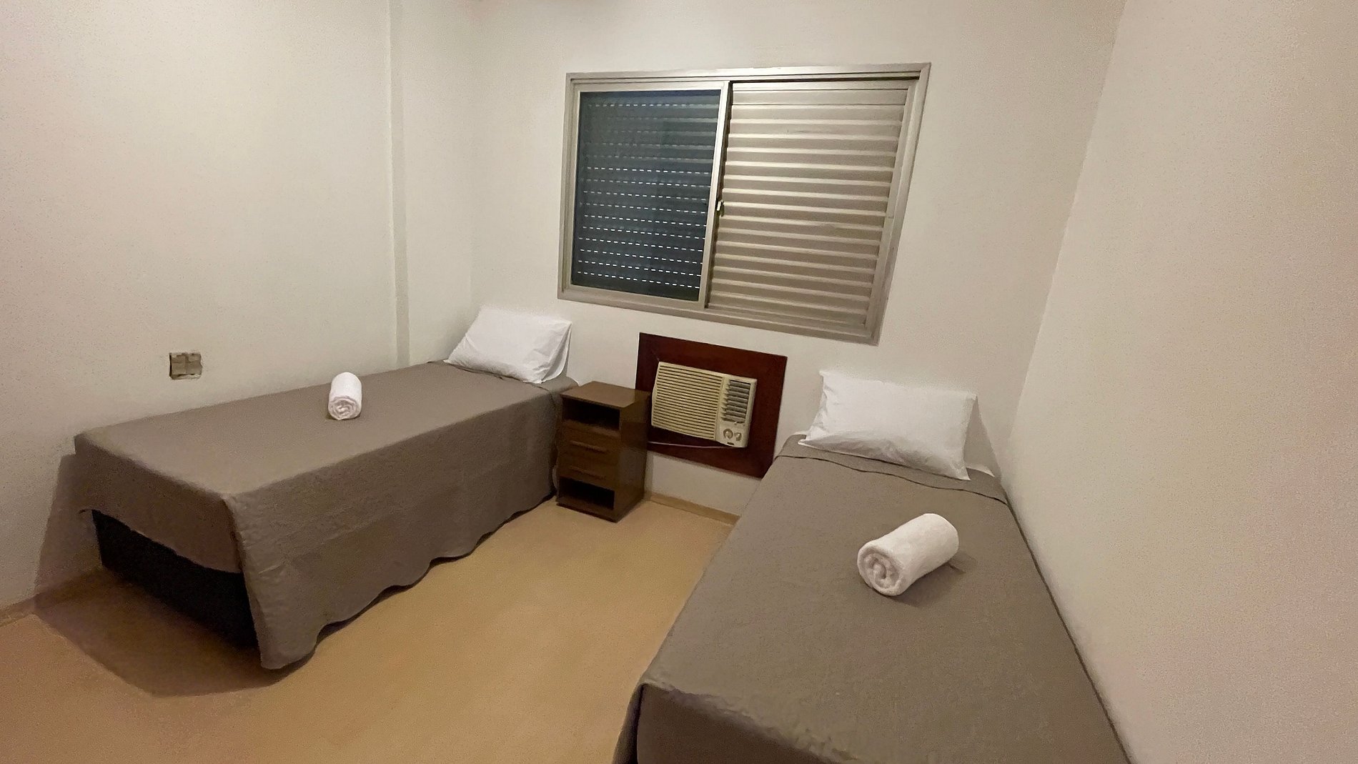 Espaço com uma suíte e 02 quartos com 02 camas box que podem ser juntadas podem ser fornecidos 02 colchões... Não possui grade de proteção na sacada… Recomendado cuidado com crianças.