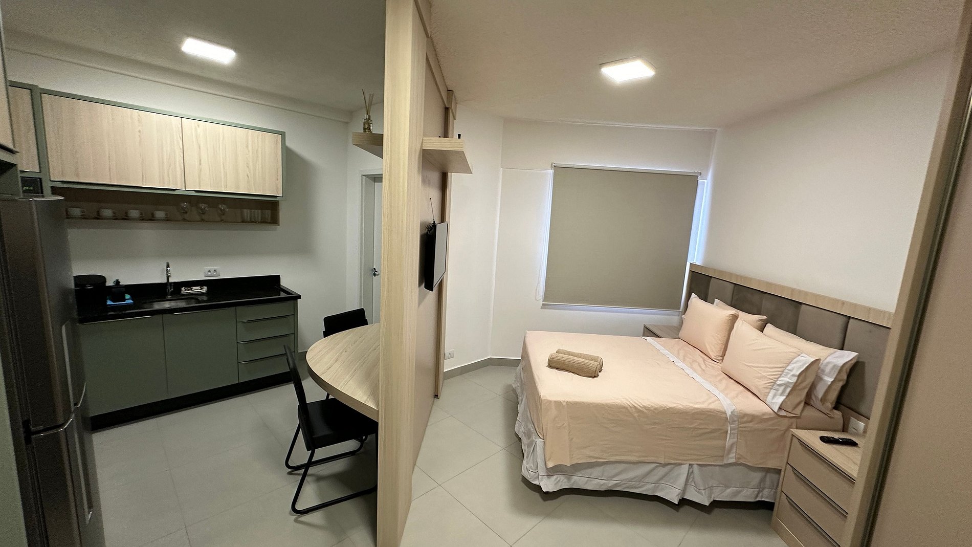 Novo apartamento Studio situado no polo comercial de Foz. A poucos metros da Ponte da Amizade, sendo uma ótima opção para quem vem conhecer Foz e comprar no Paraguai. Próximo a supermercados, posto de gasolina, lojas de conveniência, caixa eletrônico, terminal rodoviário, farmácias, lanchonetes e das principais lojas da Vila Portes.