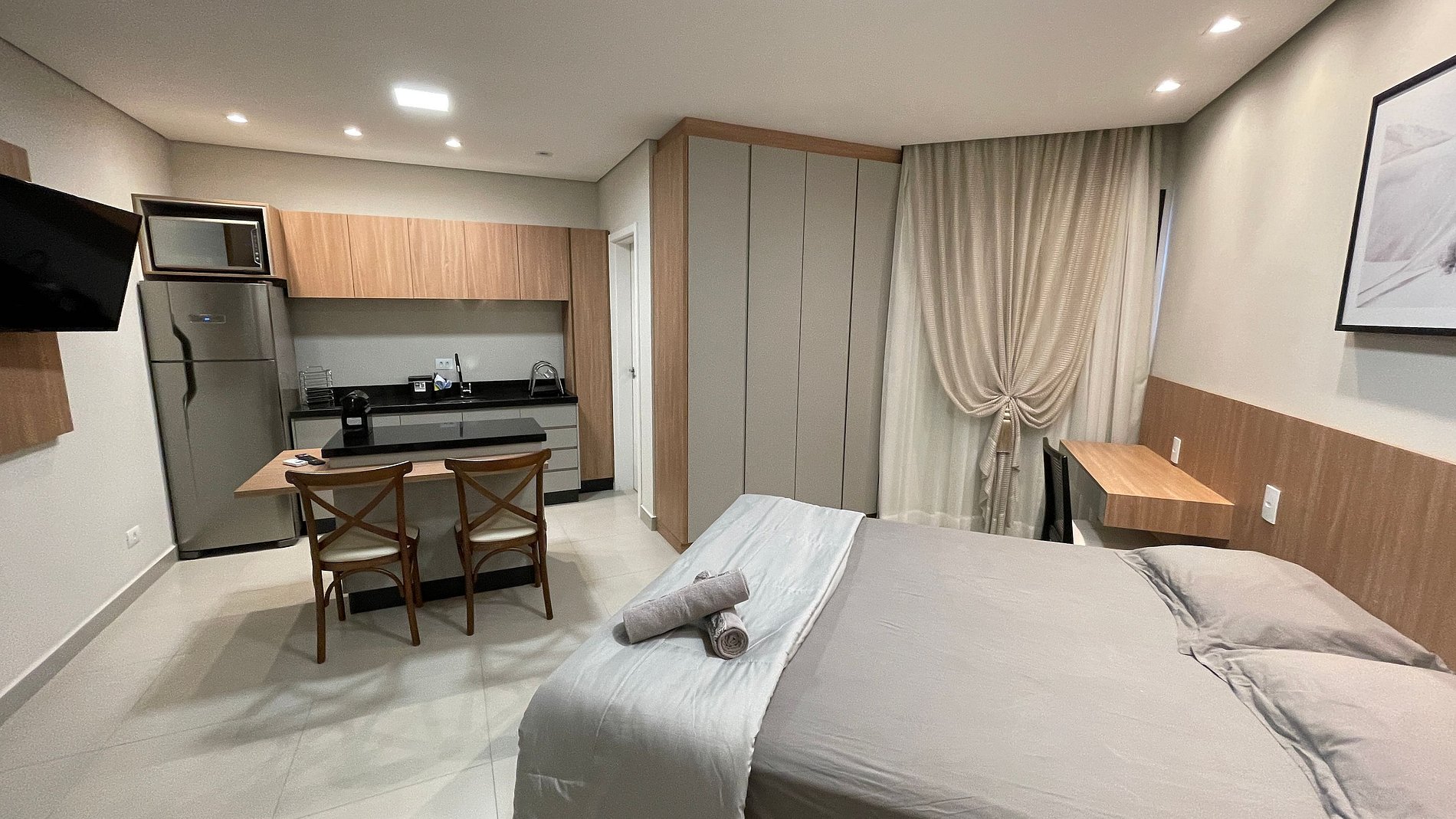 Novo apartamento Studio situado no polo comercial de Foz. A poucos metros da Ponte da Amizade, sendo uma ótima opção para quem vem conhecer Foz e comprar no Paraguai. Próximo a supermercados, posto de gasolina, lojas de conveniência, caixa eletrônico, terminal rodoviário, farmácias, lanchonetes e das principais lojas da Vila Portes.
